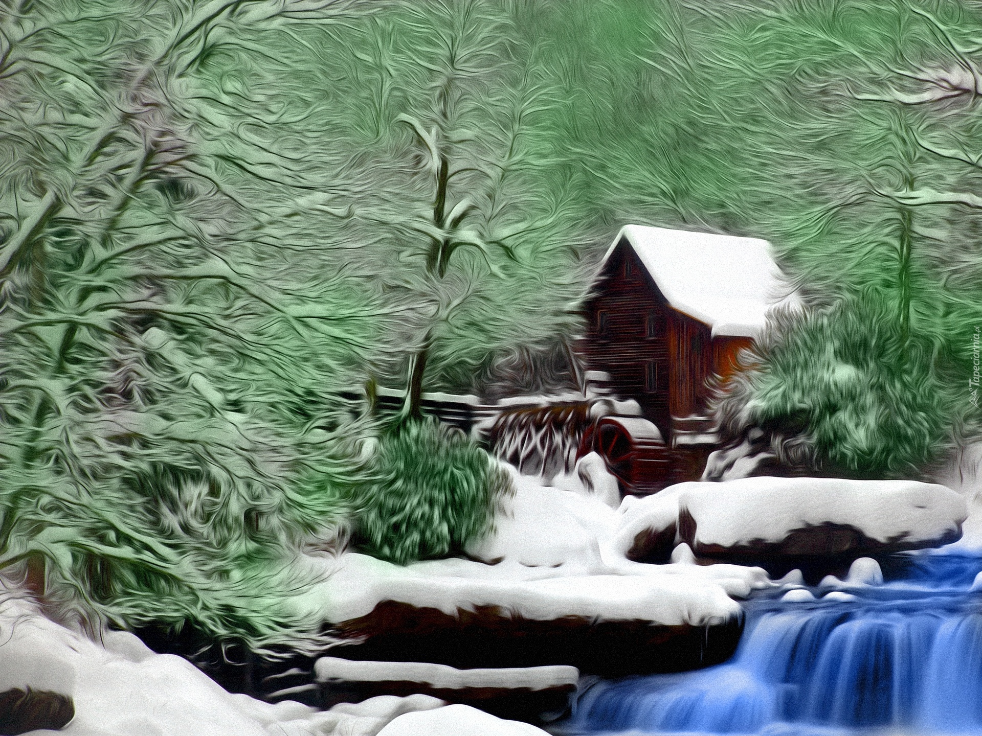 Edytor tapety: Krajobraz, Zima, Rzeka, Fractalius