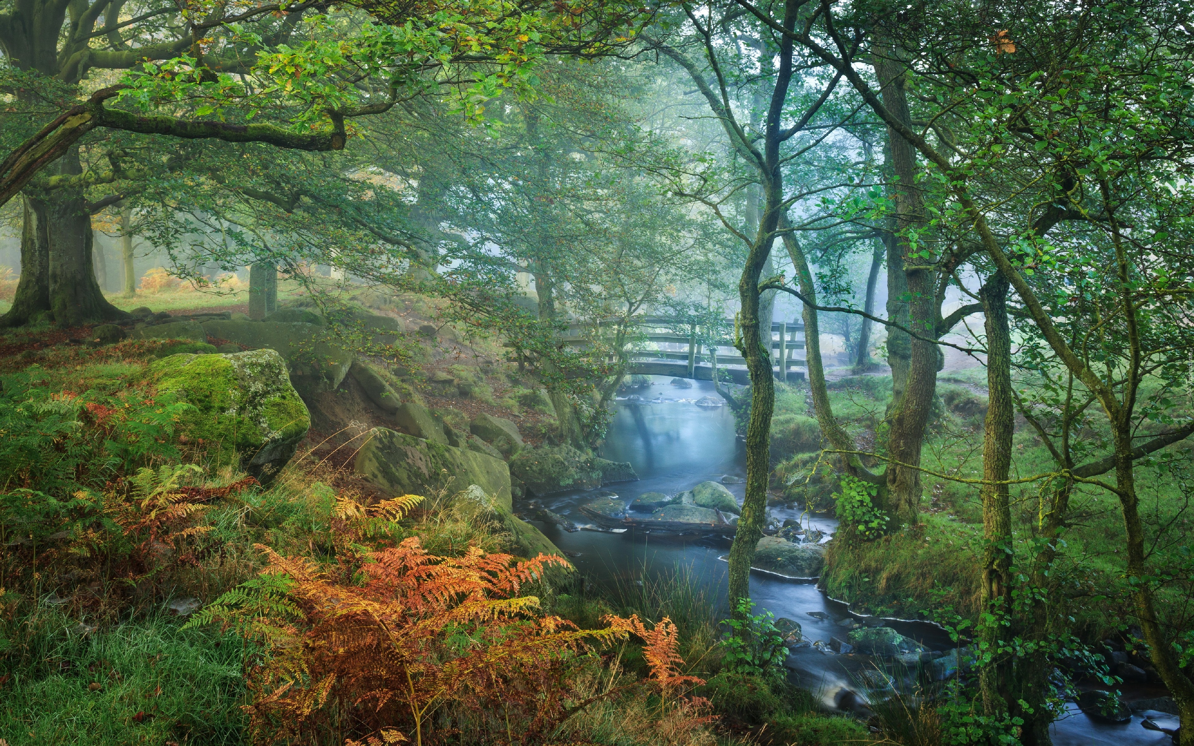 Edytor tapety: Las, Drzewa, Rzeka, Mostek