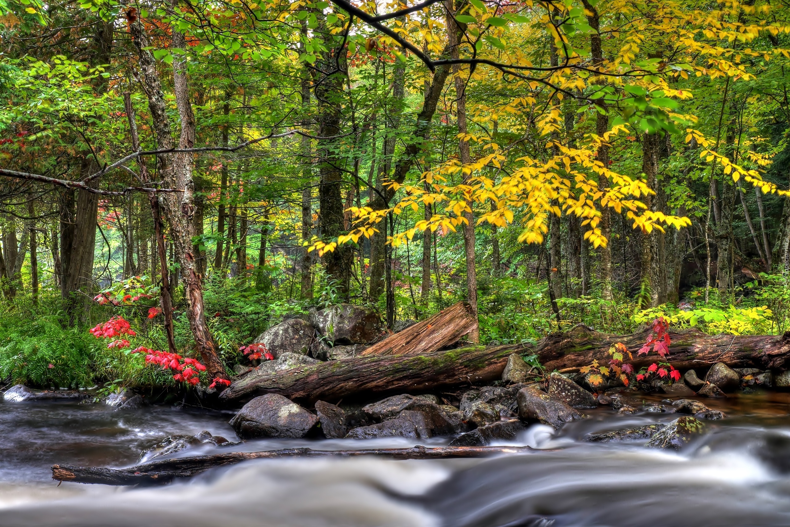Edytor tapety: Jesień, Las, Kamienie, Rzeka