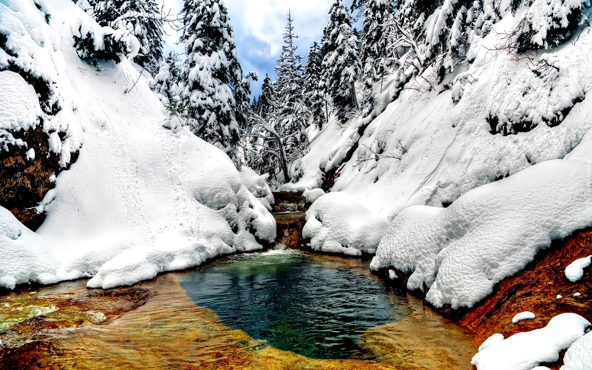 Edytor tapety: Rzeka, Góry, Zima, Śnieg