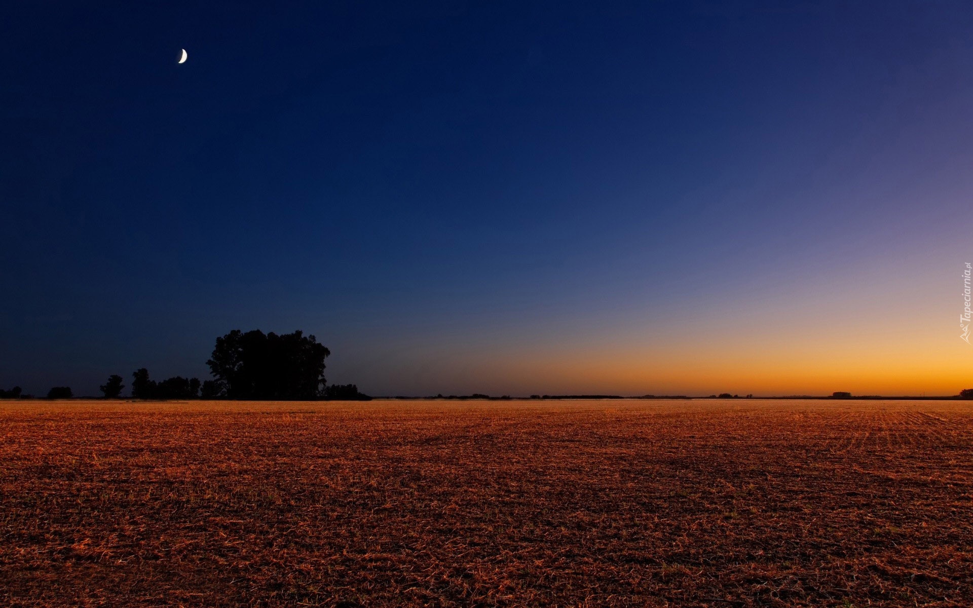 Edytor tapety: Pole, Zachód Słońca, Księżyc