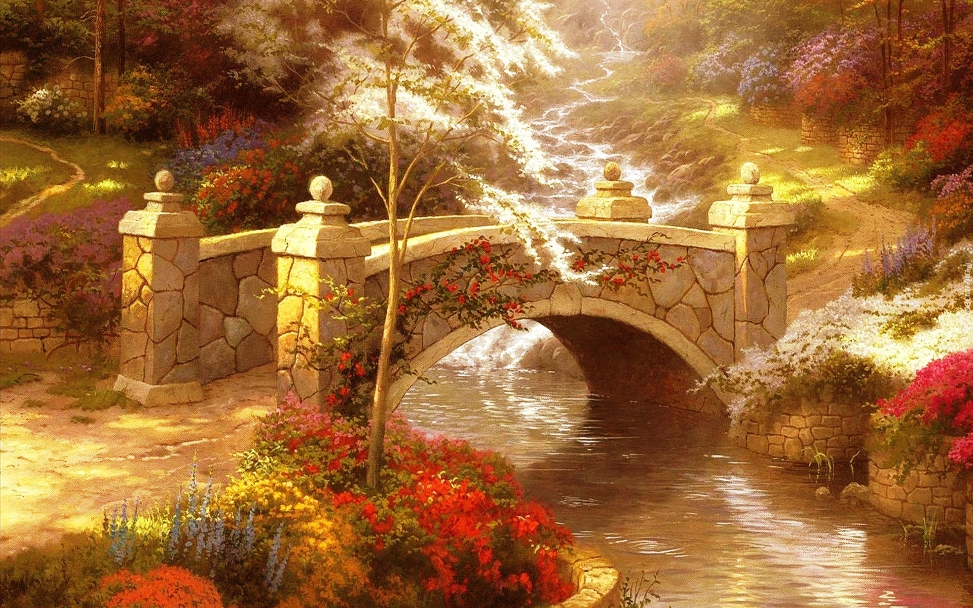 Edytor tapety: Mostek, Park, Rzeka