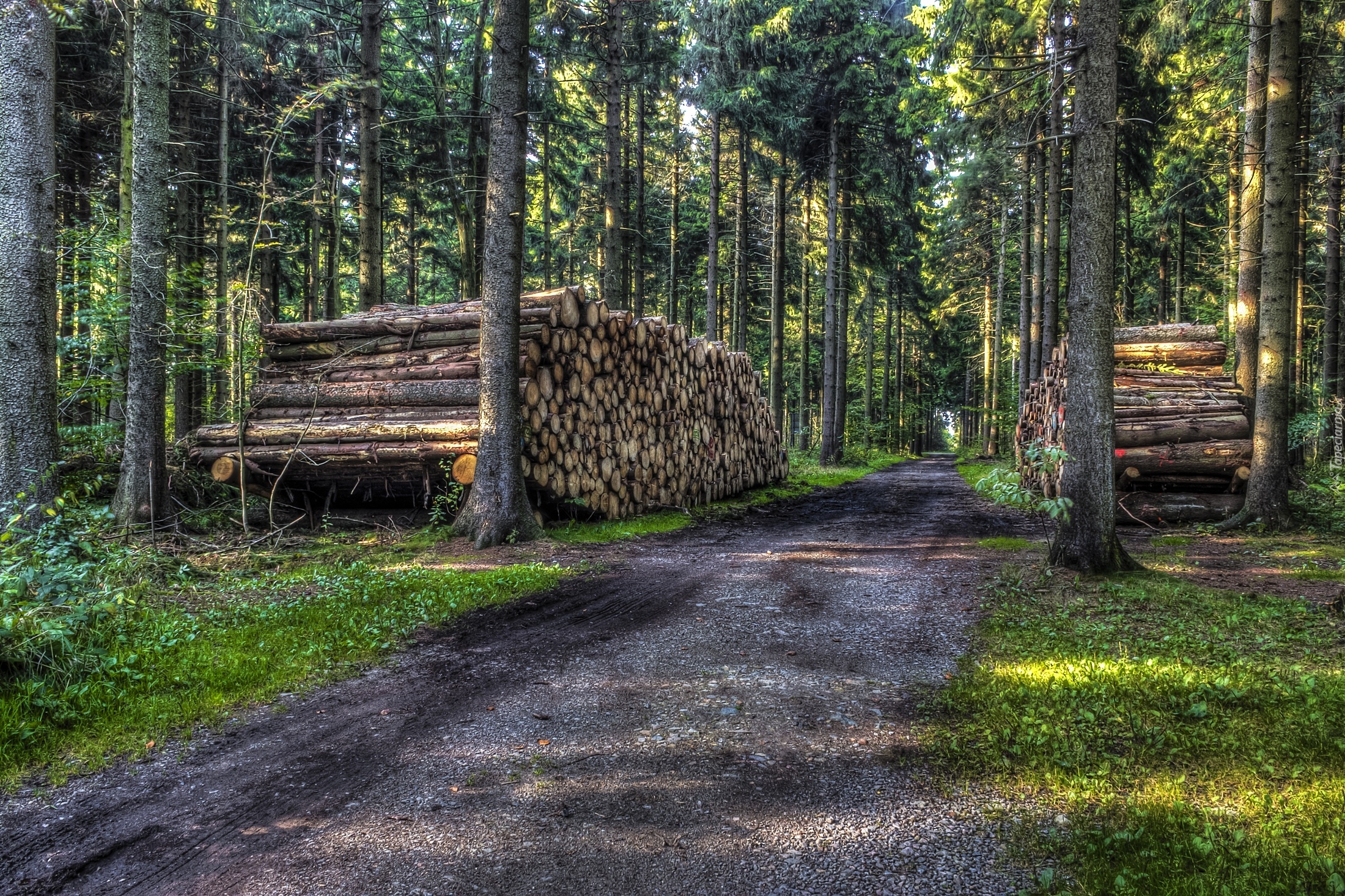 Edytor tapety: Las, Droga, Ucięte, Pnie