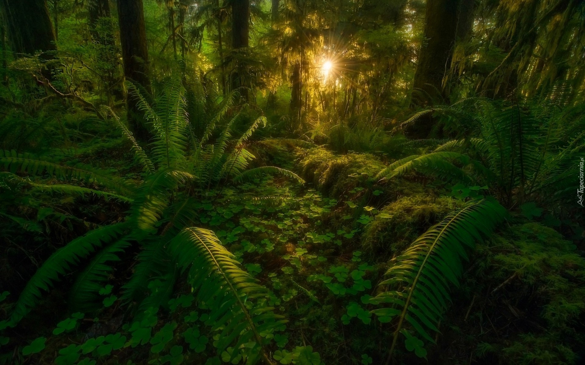 Edytor tapety: Dżungla, Paprocie, Promienie, Słońca