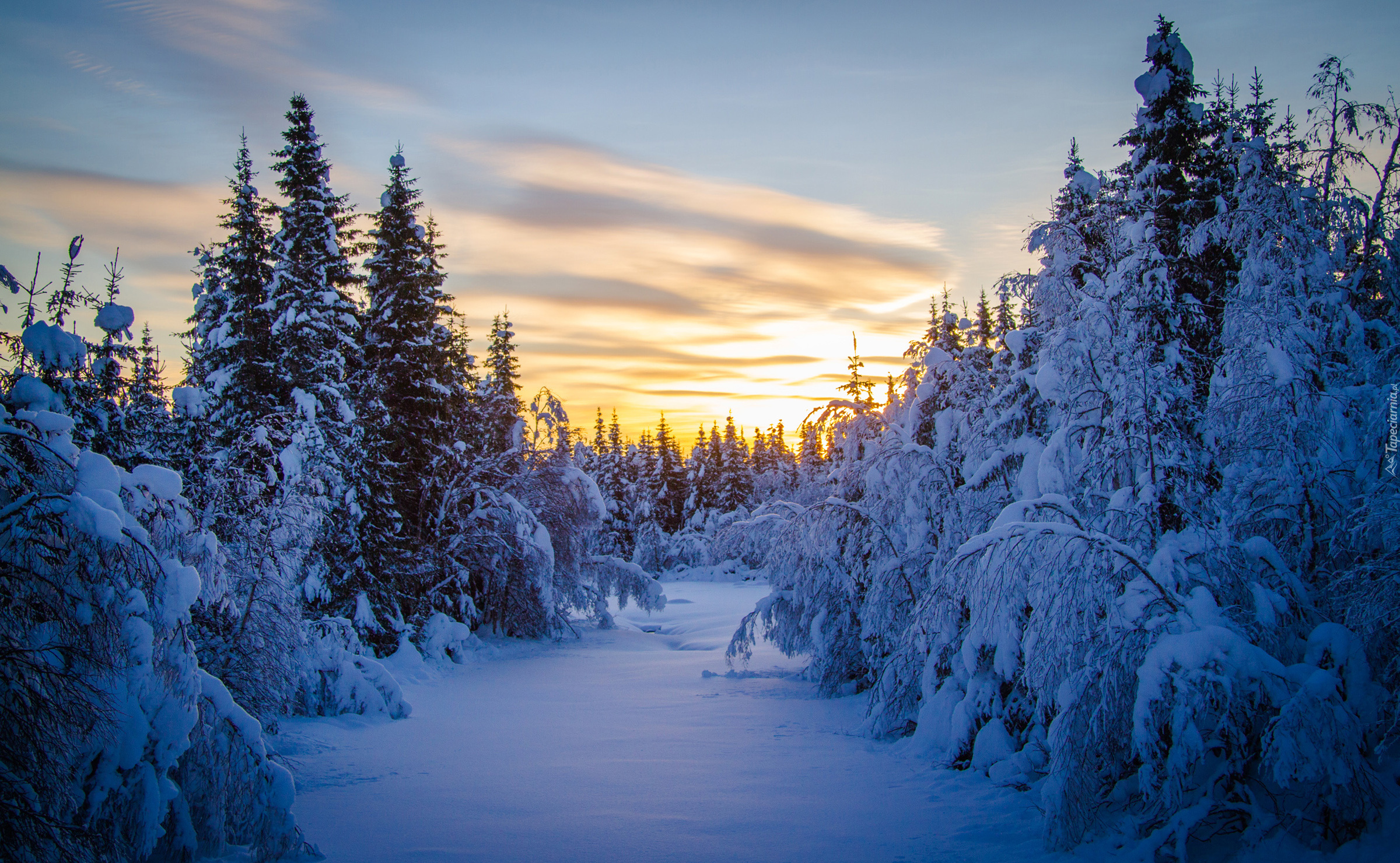 Edytor tapety: Zima, Las, Ścieżka, Zachód Słońca
