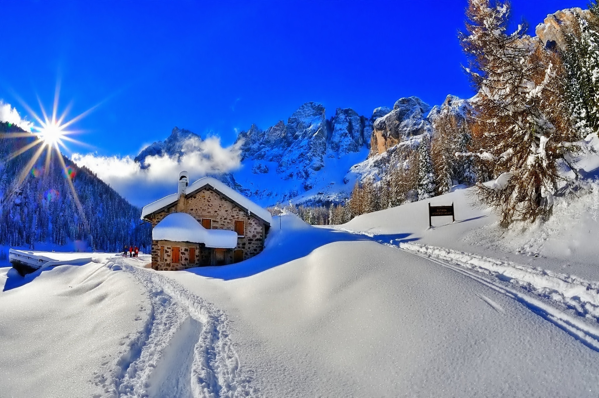 Edytor tapety: Dom, Zima, Droga, Promienie Slońca