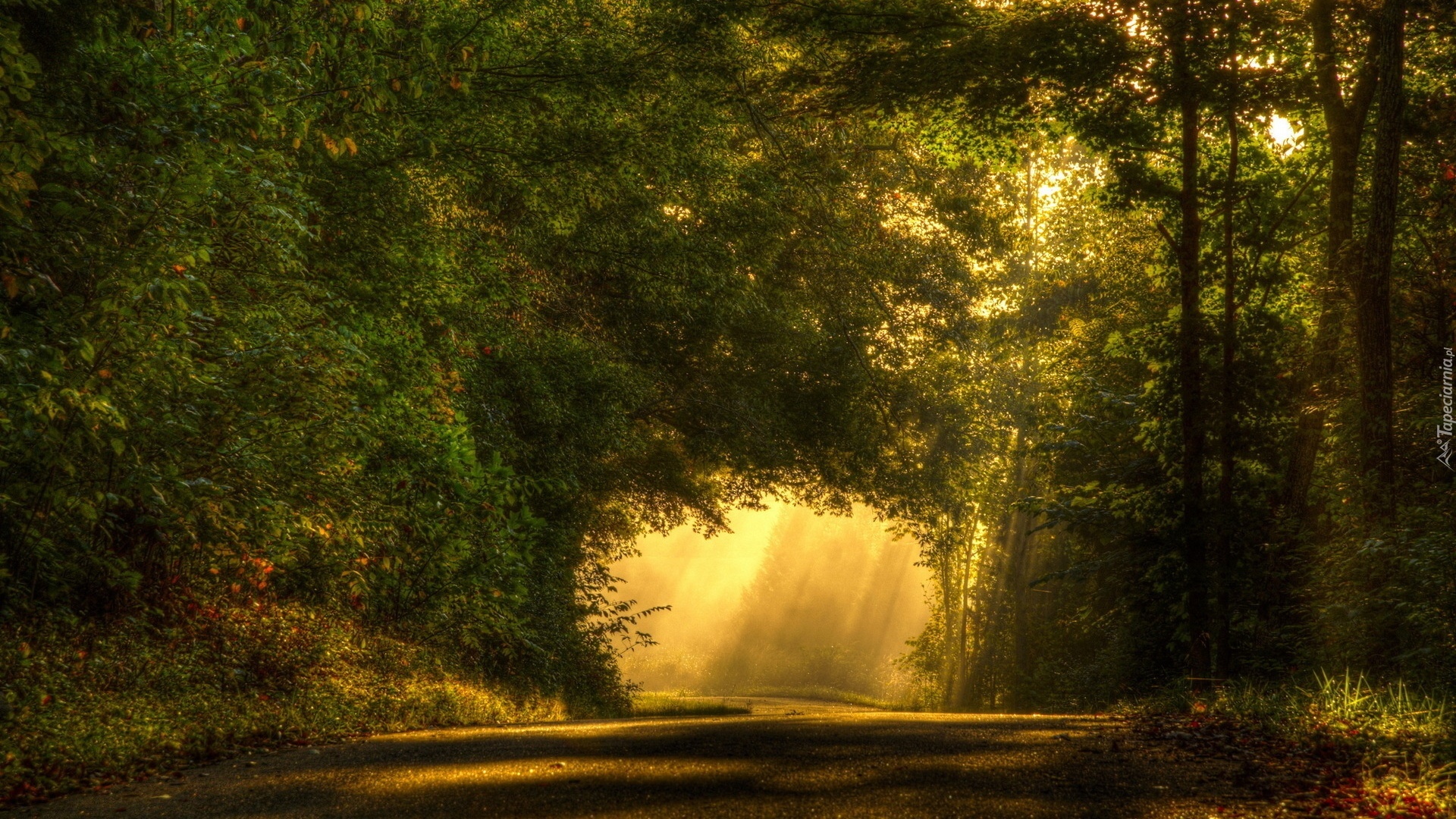 Edytor tapety: Droga, Drzewa, Przebijające Światło, Park