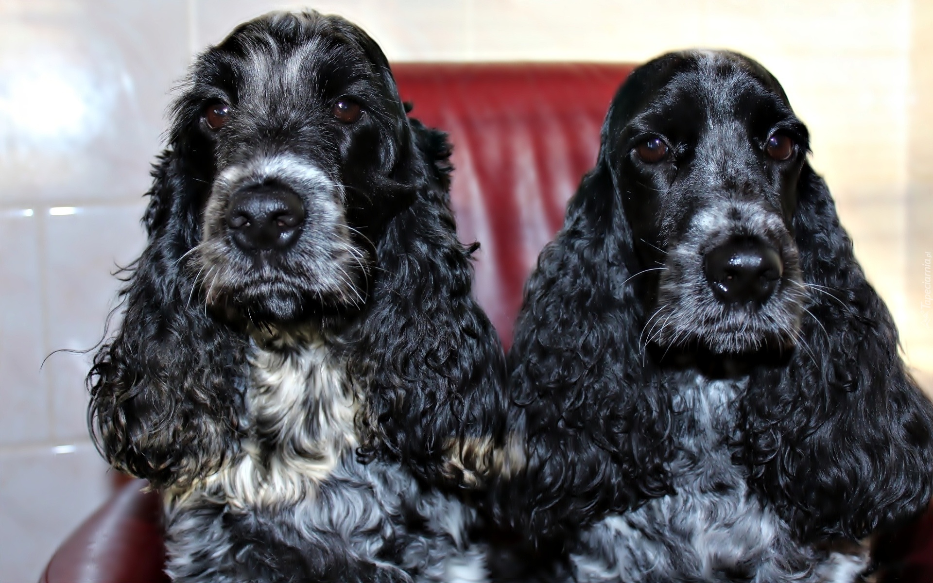 Edytor tapety: Dwa, Czarne, Psy, Spaniel