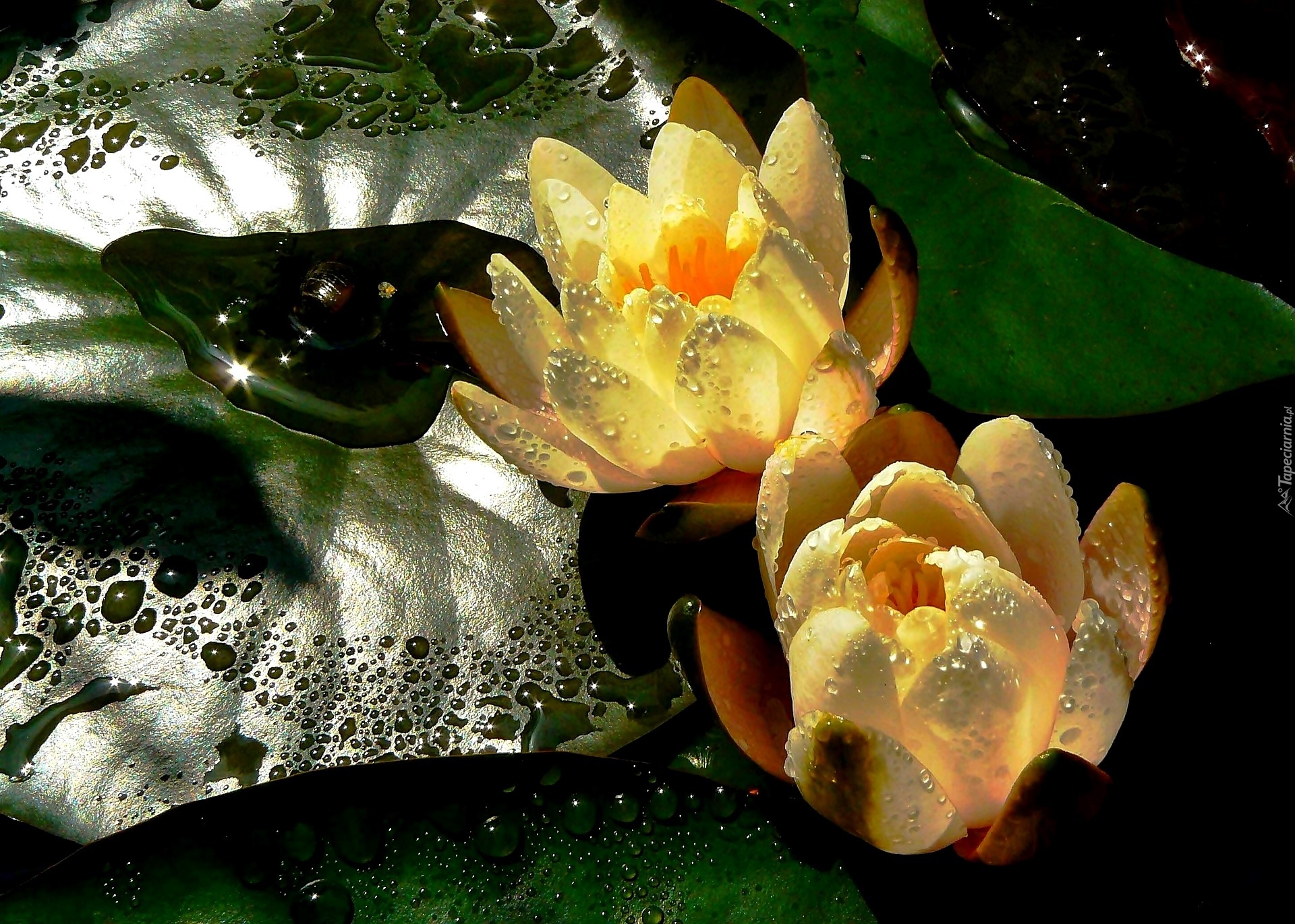 Edytor tapety: Lilie, Wodne, Liście, Krople