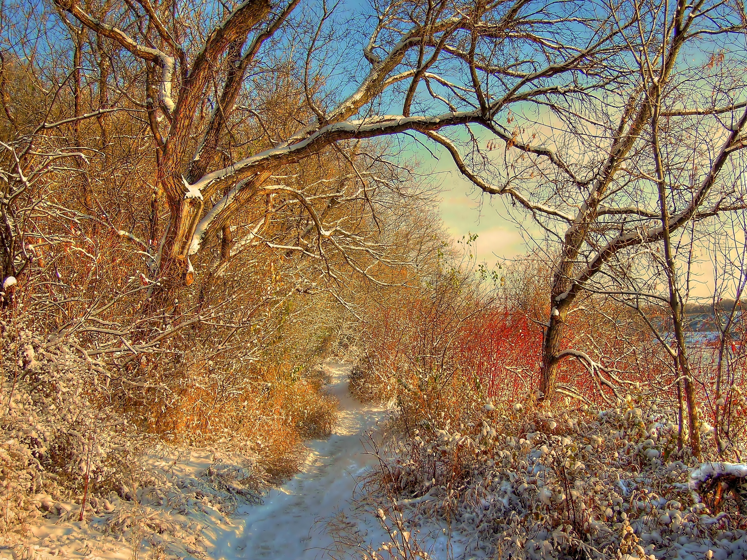 Edytor tapety: Zima, Drzewa, Ścieżka
