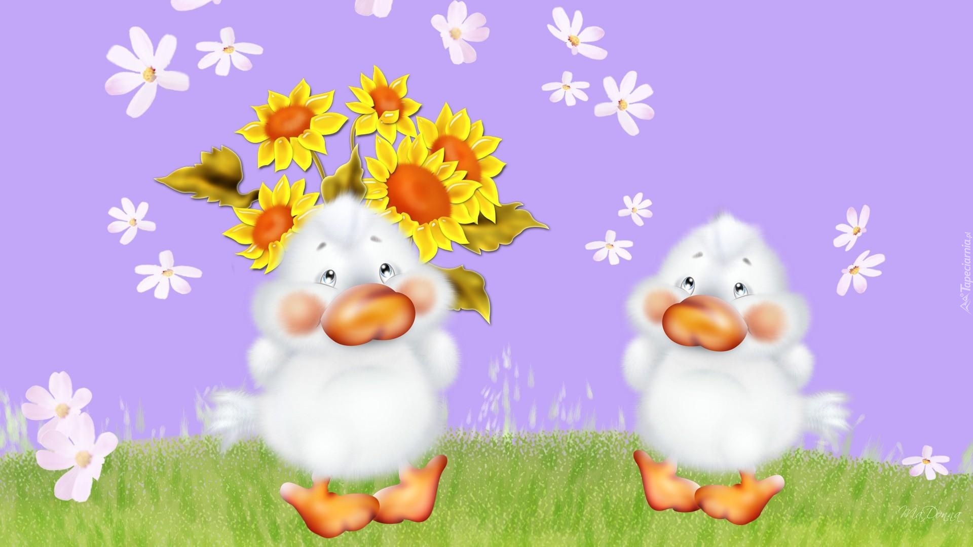 Edytor tapety: Dla Dzieci, Kaczki, Kwiaty, 2D