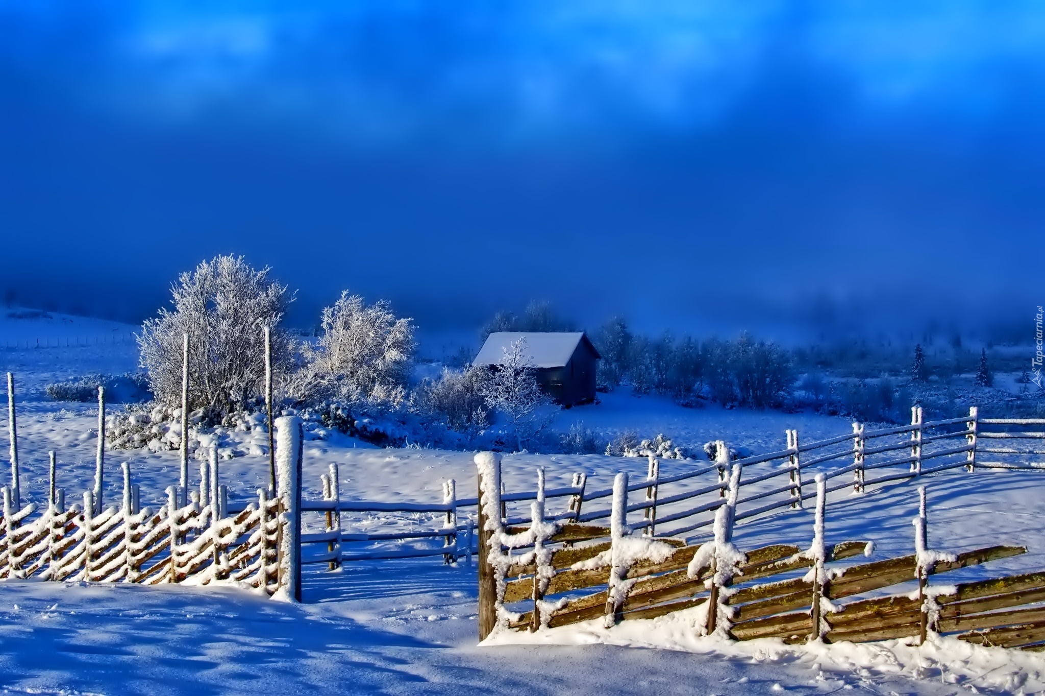 Edytor tapety: Zima, Dom, Drzewa, Płot