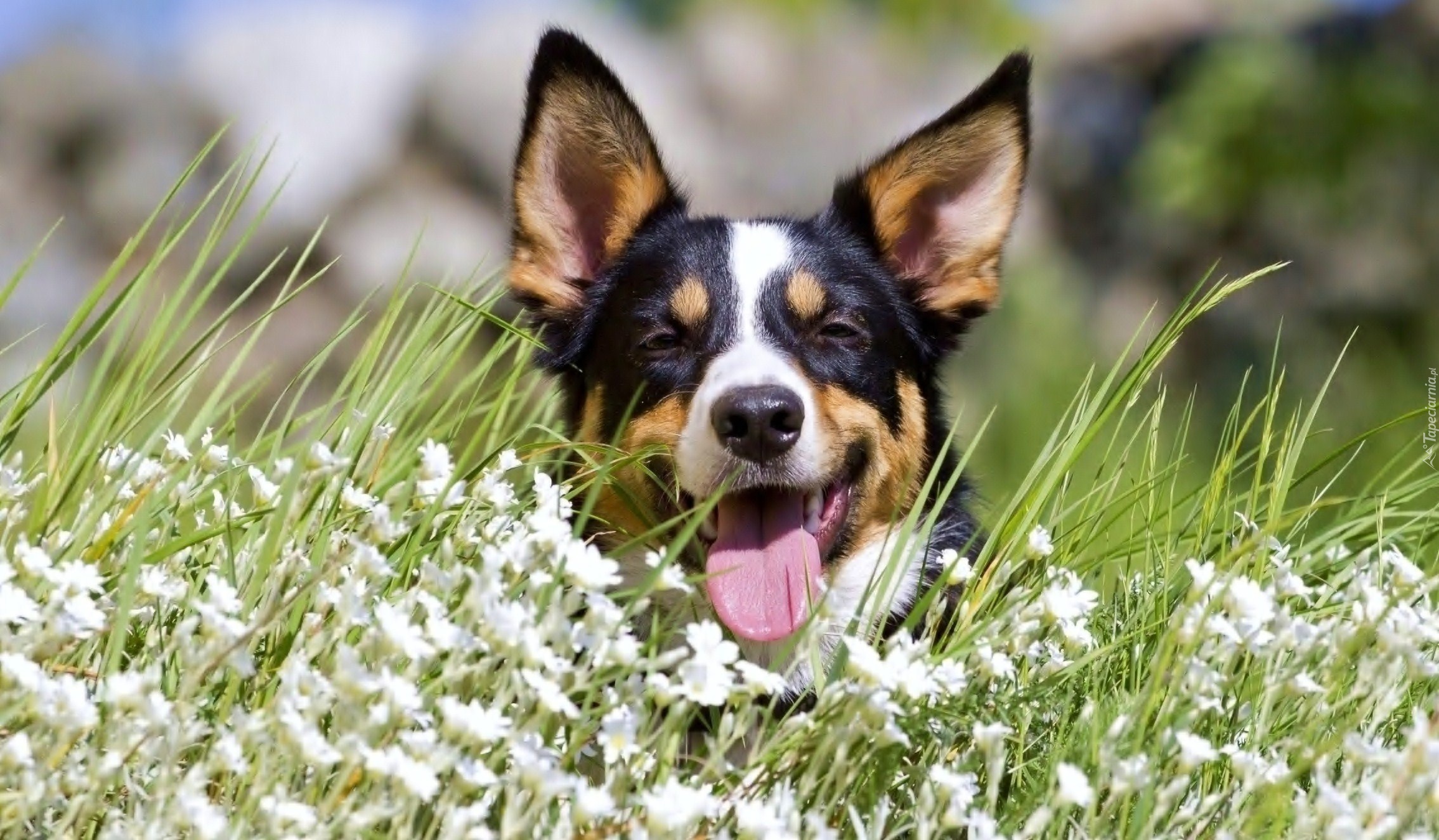 Edytor tapety: Pies, Białe, KwiaTki