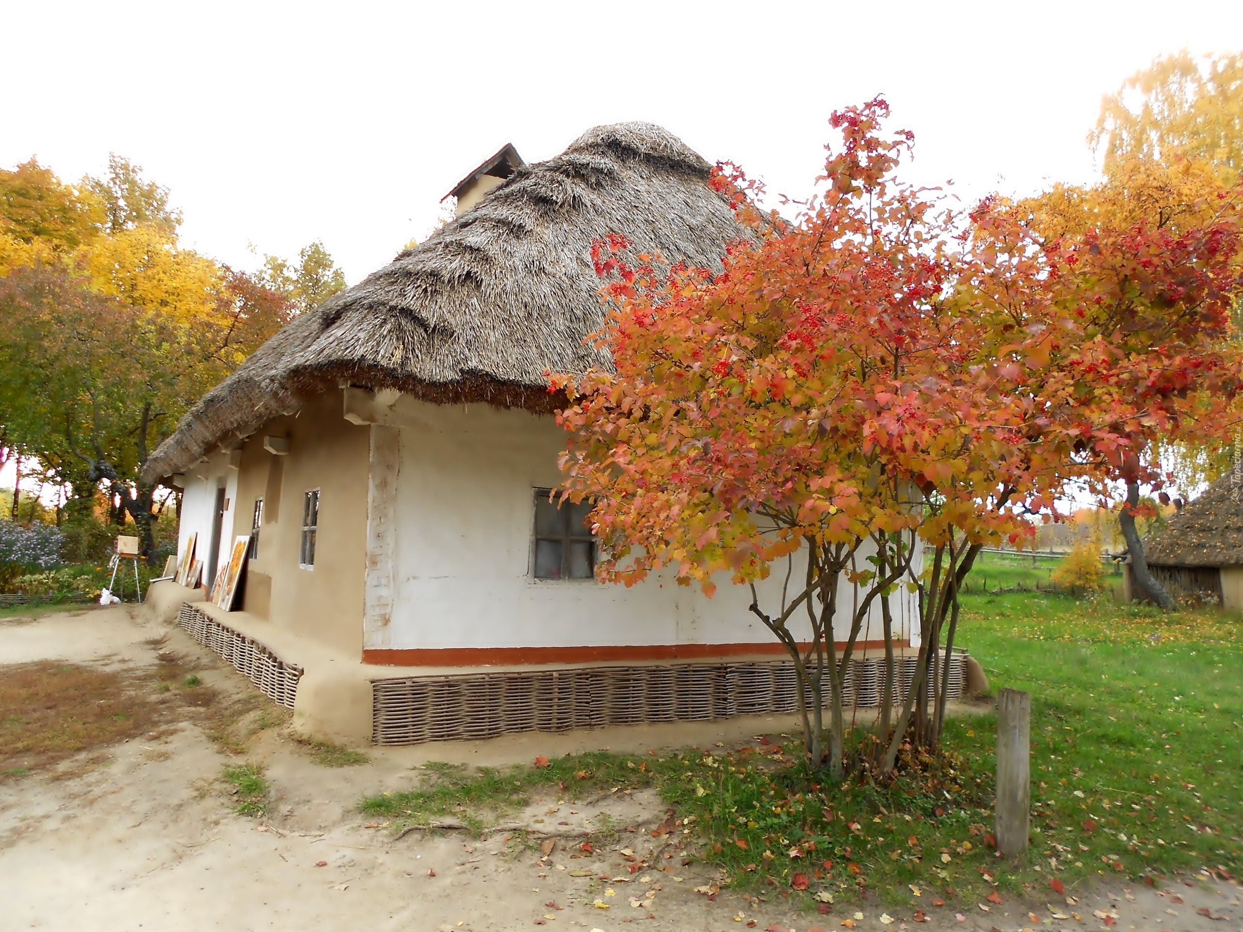 Edytor tapety: Jesień, Dom, Drzewa, Strzecha