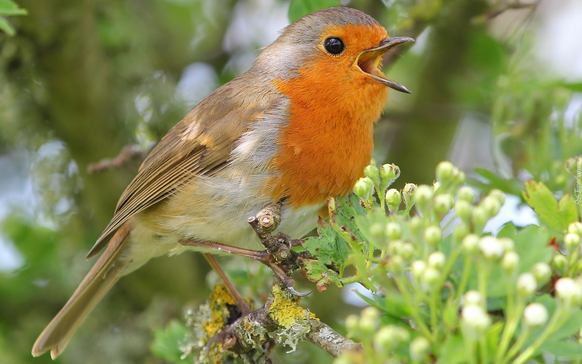 Edytor tapety: Ptak, Rudzik, Rośliny