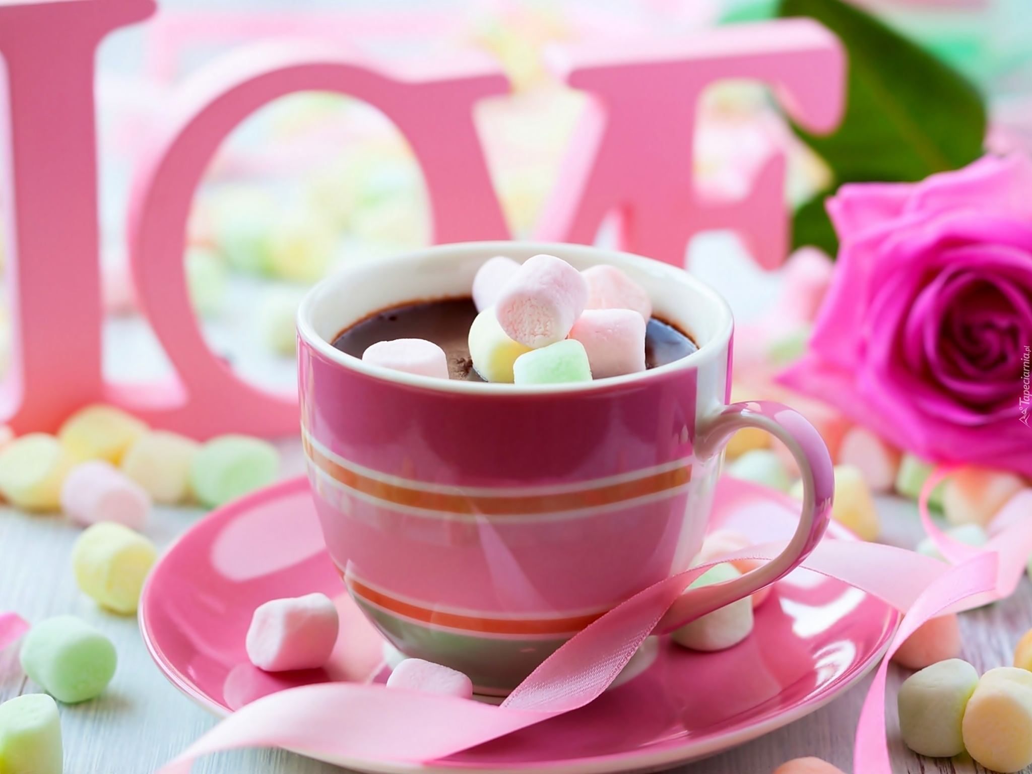Edytor tapety: Walentynki, Filiżanka, Róża, Love, Różowe