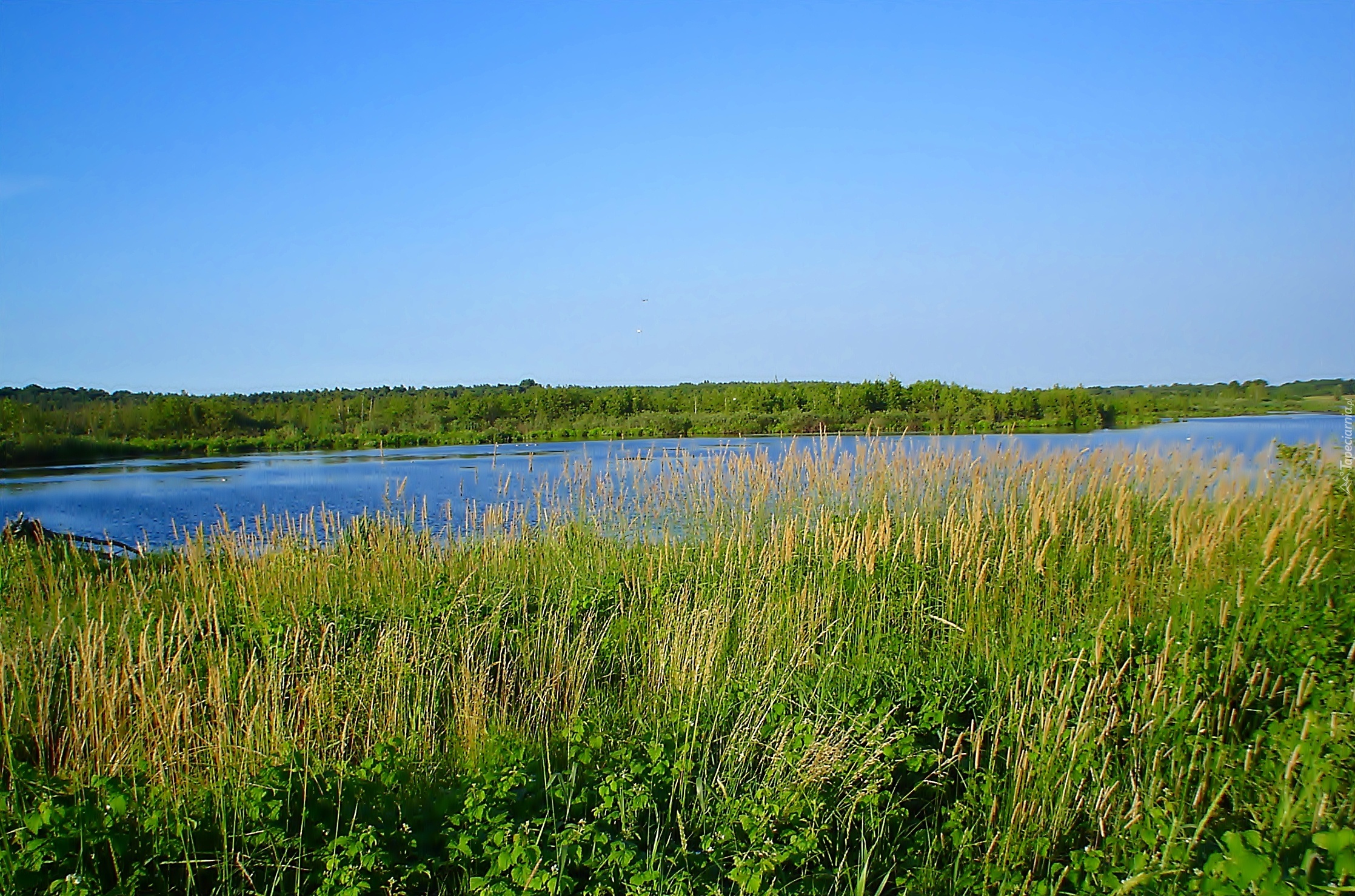 Edytor tapety: Jezioro, Niebo, Trzcina, Trawa