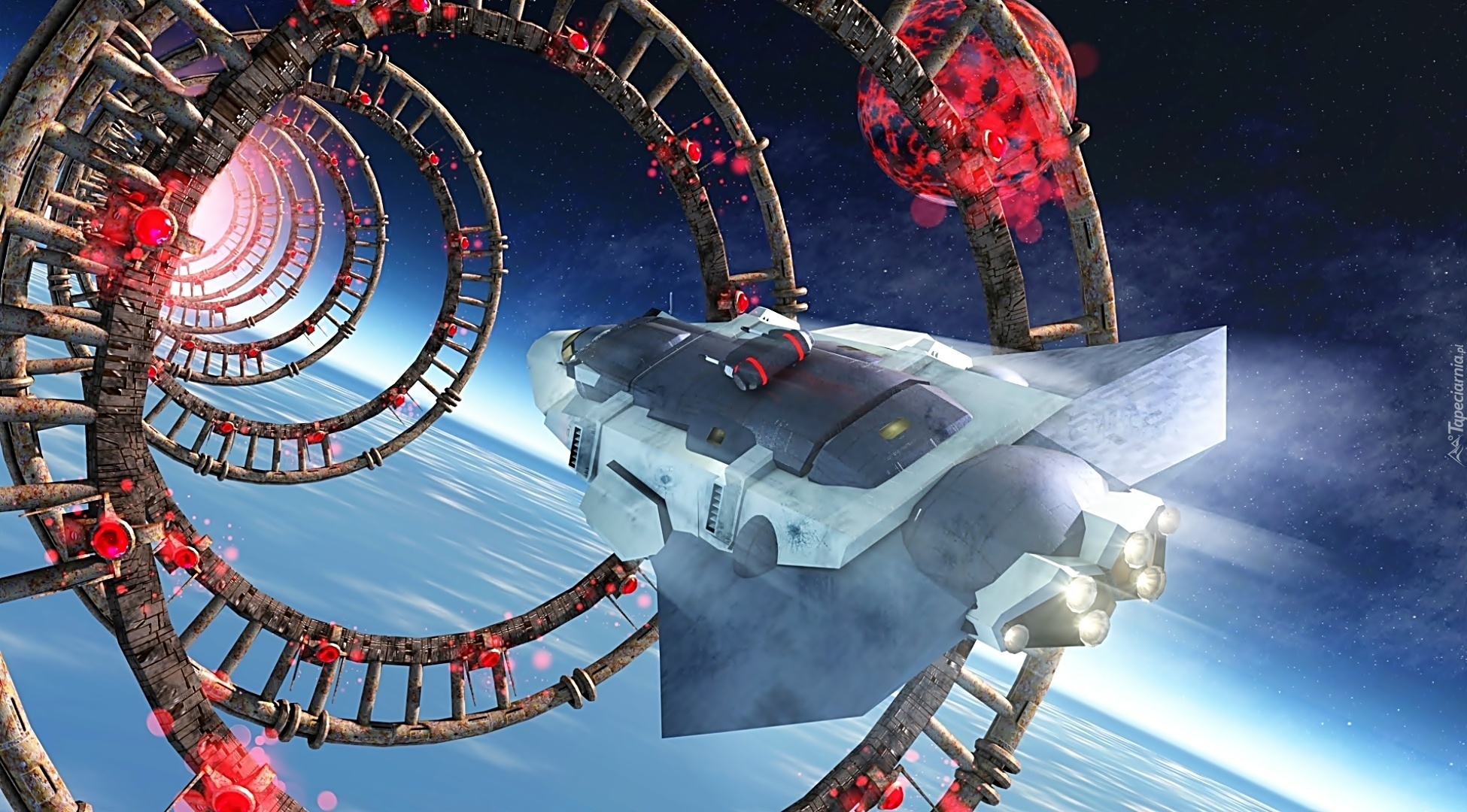 Edytor tapety: Kosmos, Fantasy, Statek, Kosmiczny, Pierścienie
