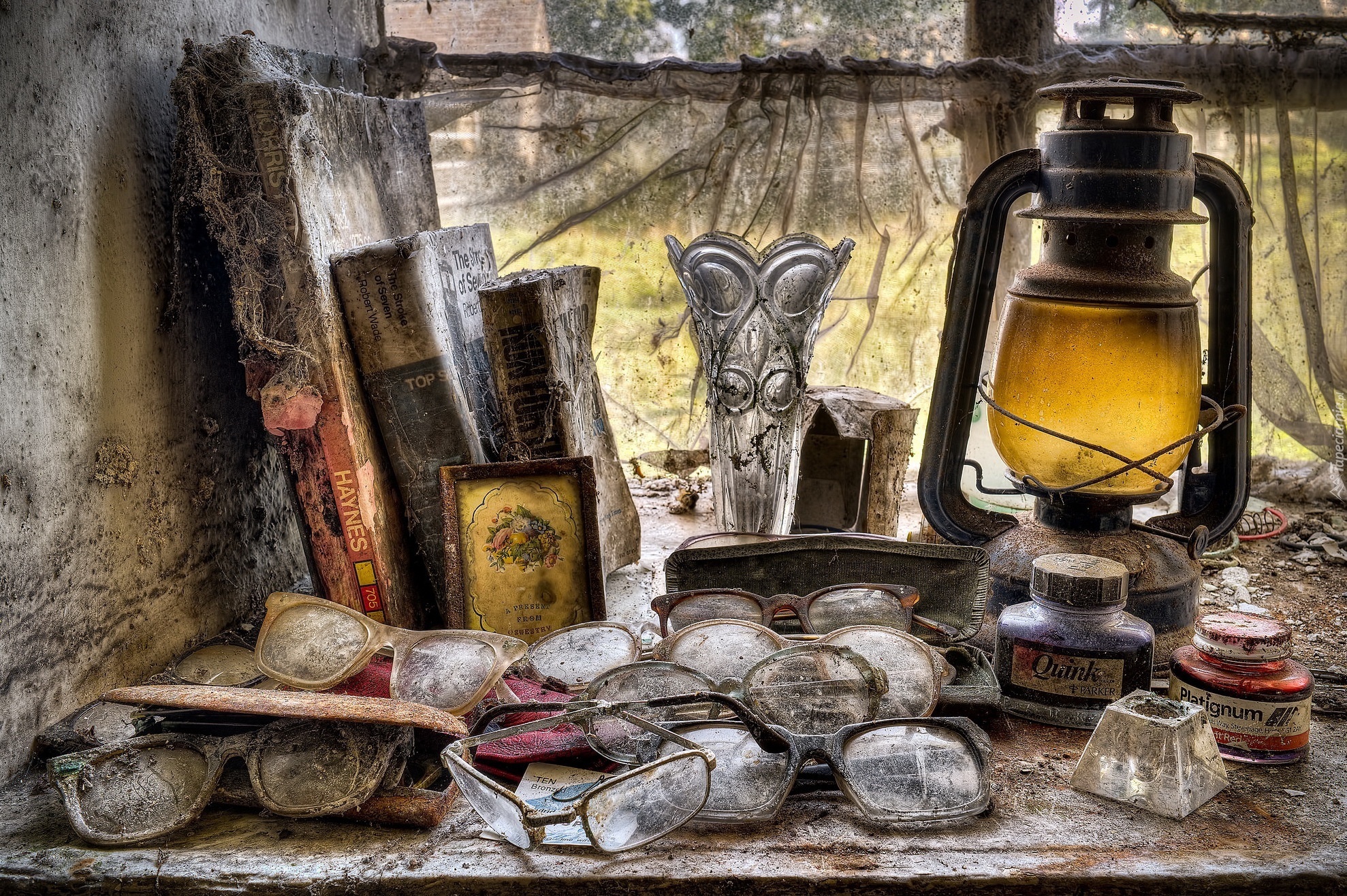 Edytor tapety: Starocie, Okulary, Lampa, Książki, Antyk