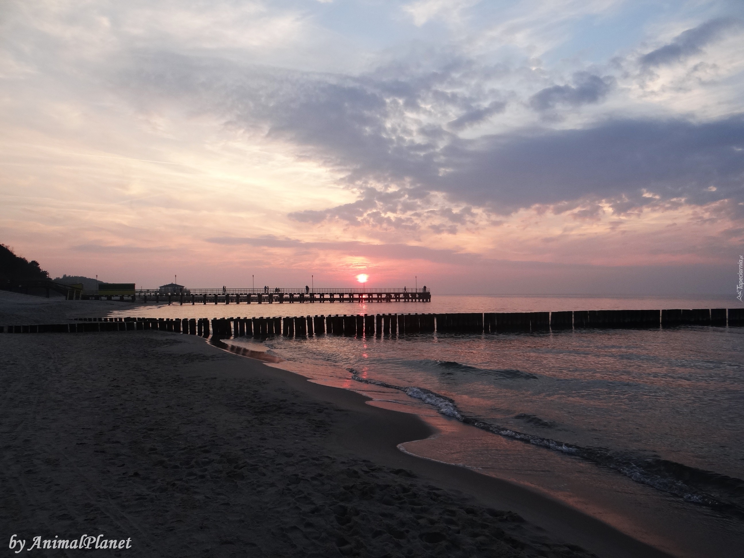 Edytor tapety: Krajobraz, Morze, Plaża, Zachód Słońca, Molo