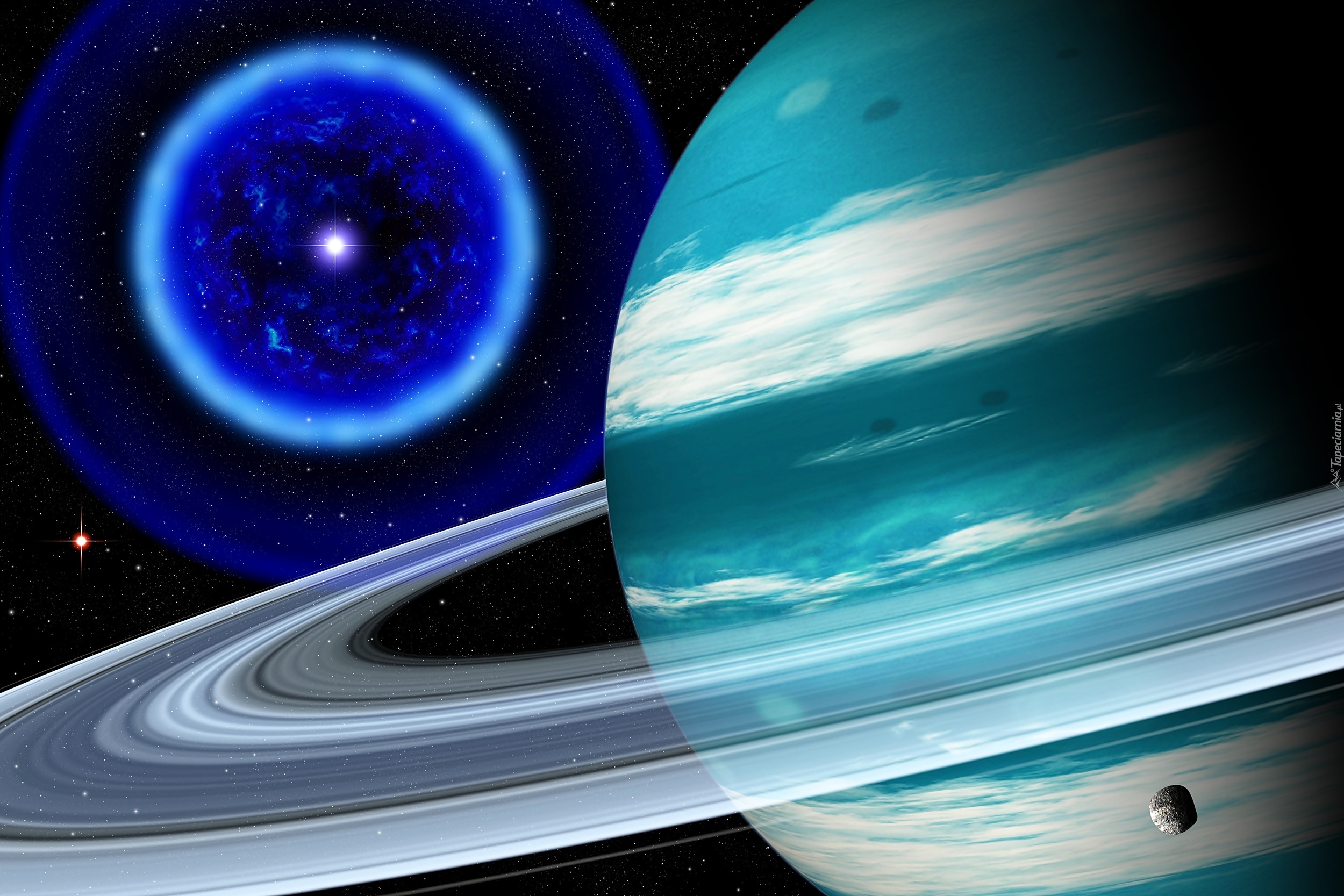 Edytor tapety: Kosmos, Fantasy, Planeta, Saturn, Gwiazda, Pierścienie