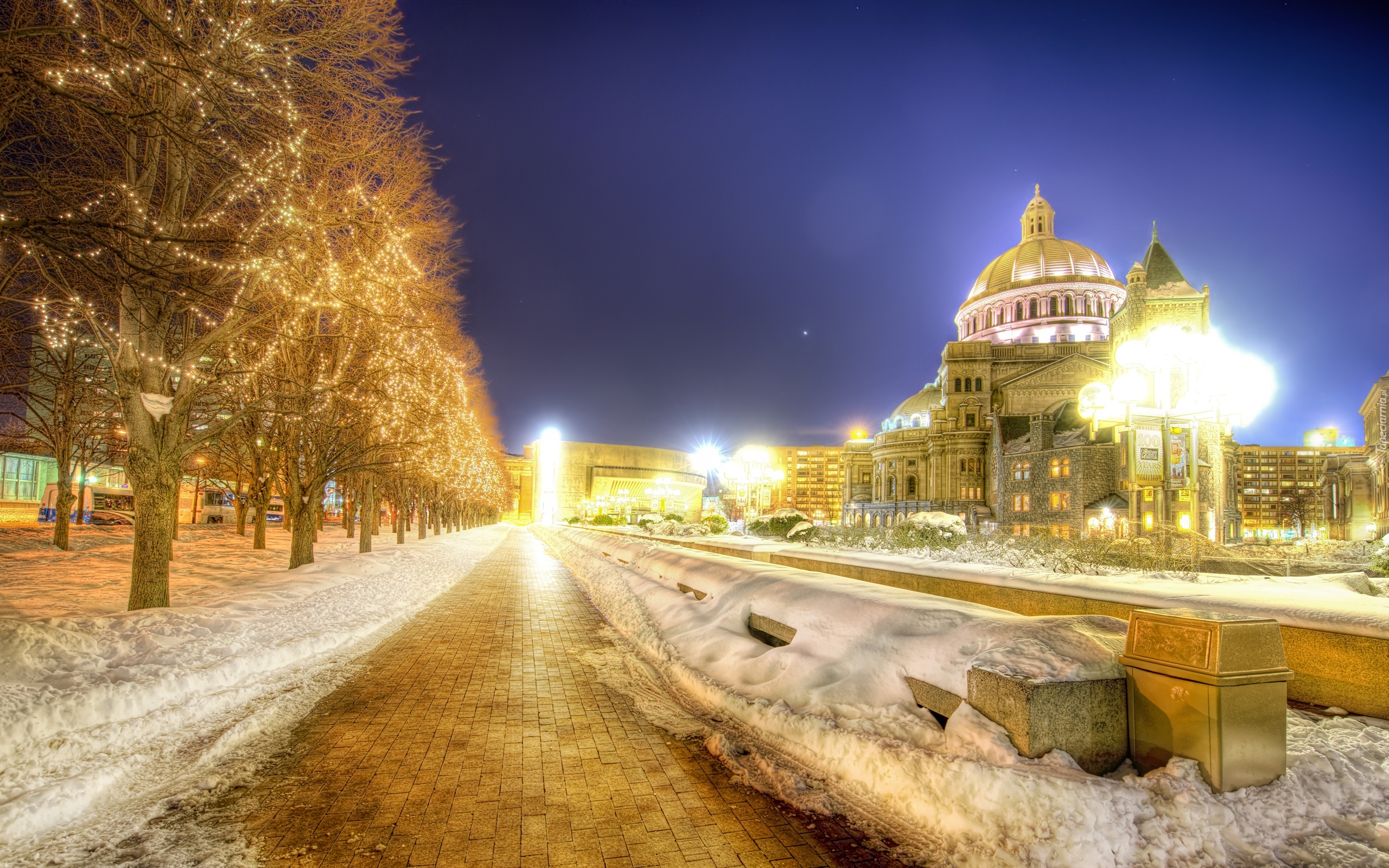 Edytor tapety: Stany Zjednoczone, Boston, Zima, Światła, Miasto nocą