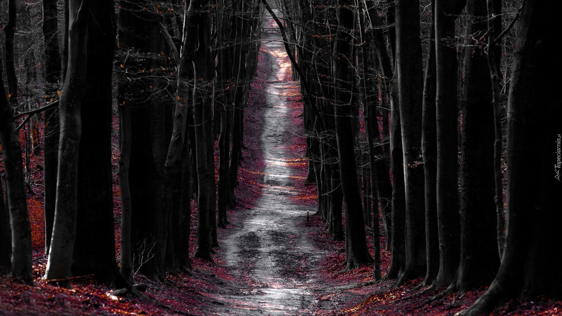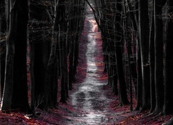 Edytor tapety: Las, Droga, Czerwone, Liście