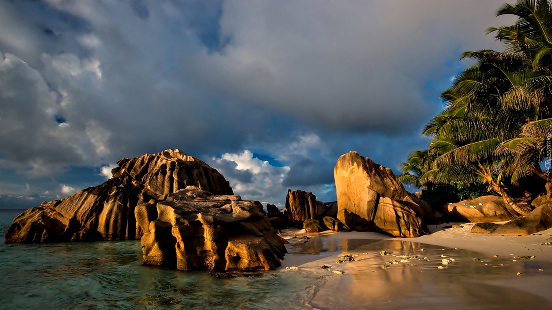 Edytor tapety: Morze, Skały, Palmy, Chmury