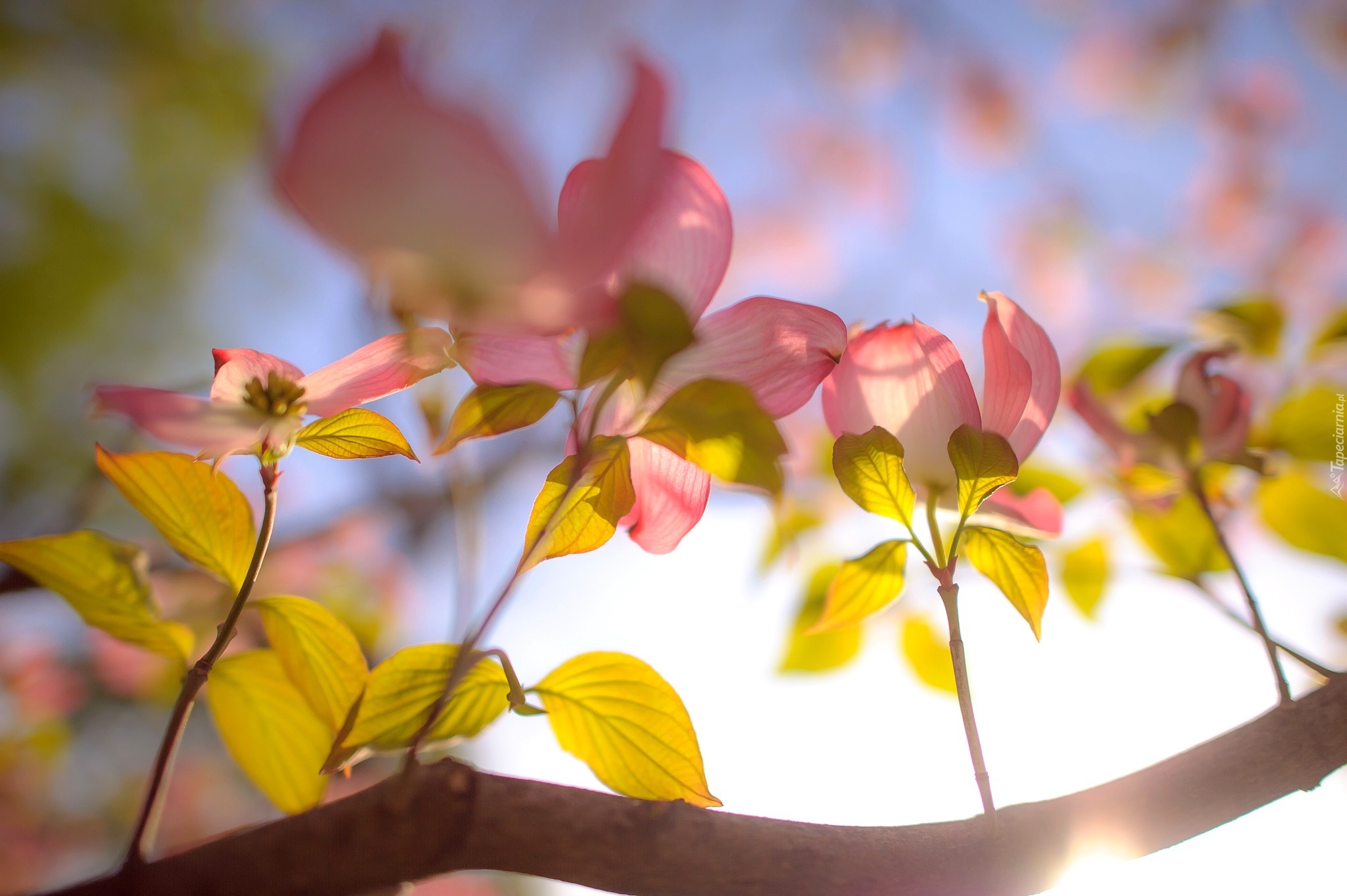 Edytor tapety: Różowe, Kwiaty, Przebijające, Światło, Wiosna