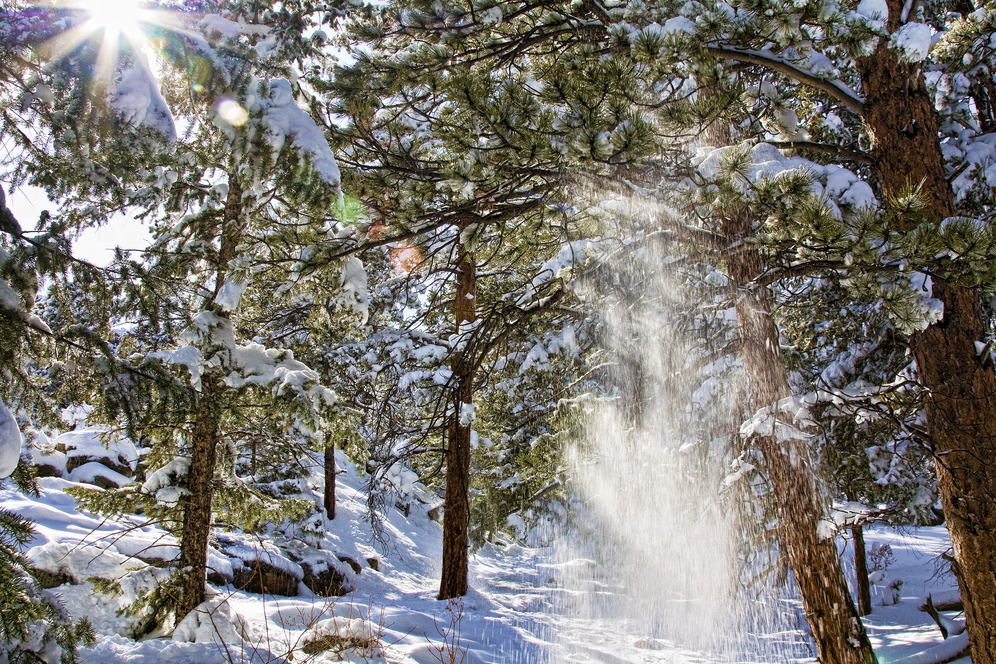 Edytor tapety: Zima, Las, Promienie, Słońca, Prószący, Śnieg