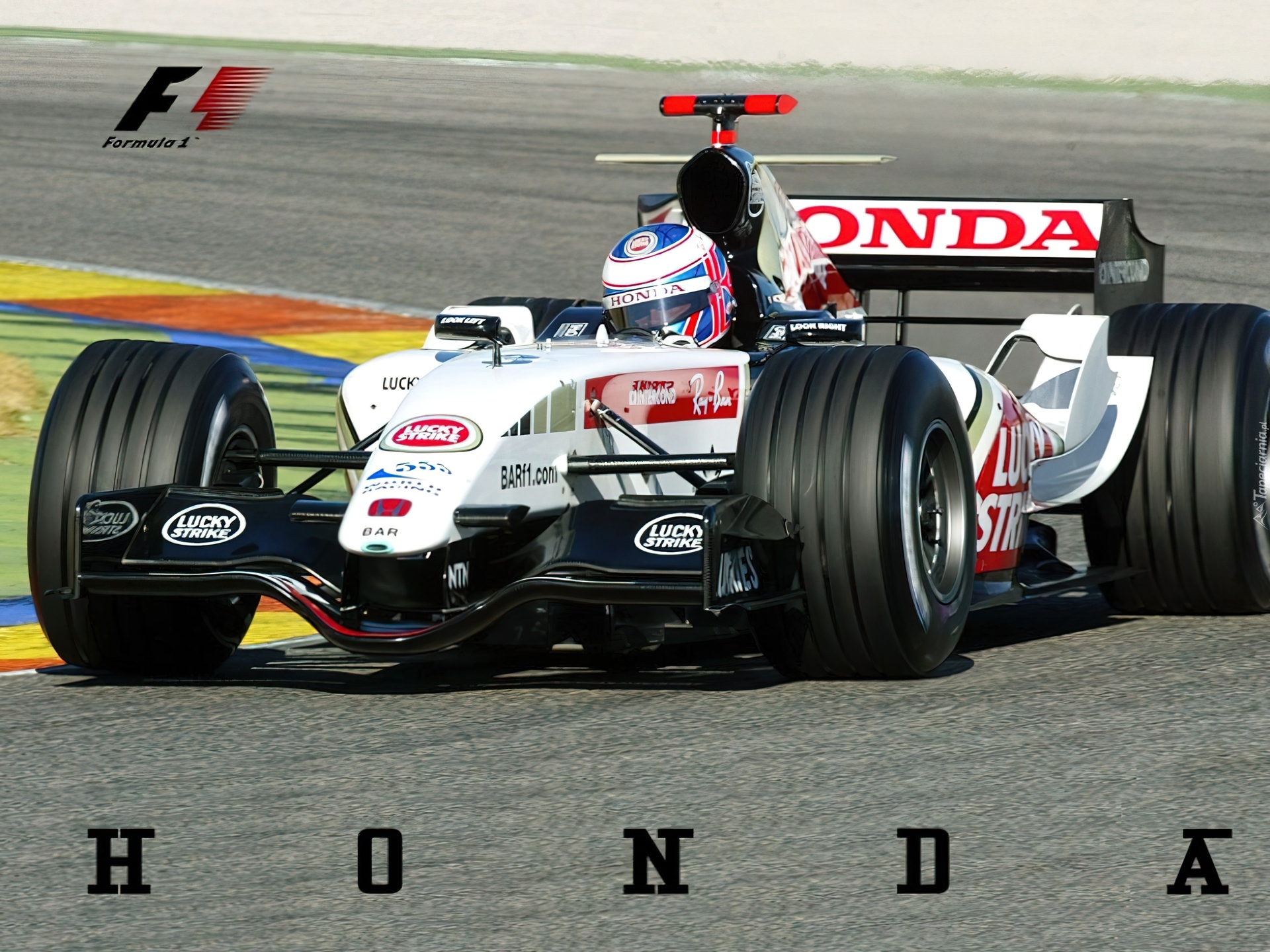 Edytor tapety: Formuła 1,bolid,opony, kask , koła, spojler,honda