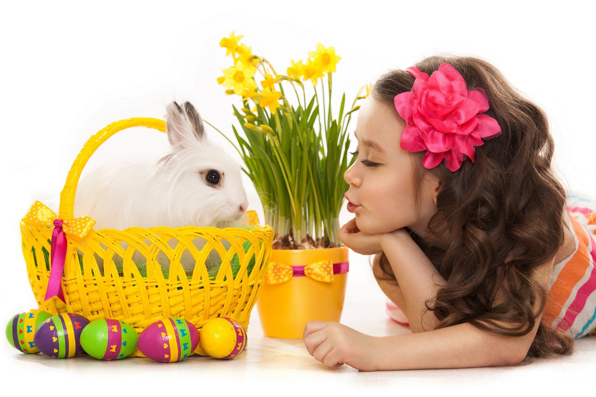 Edytor tapety: Dziewczynka, Koszyk, Królik, Wielkanoc