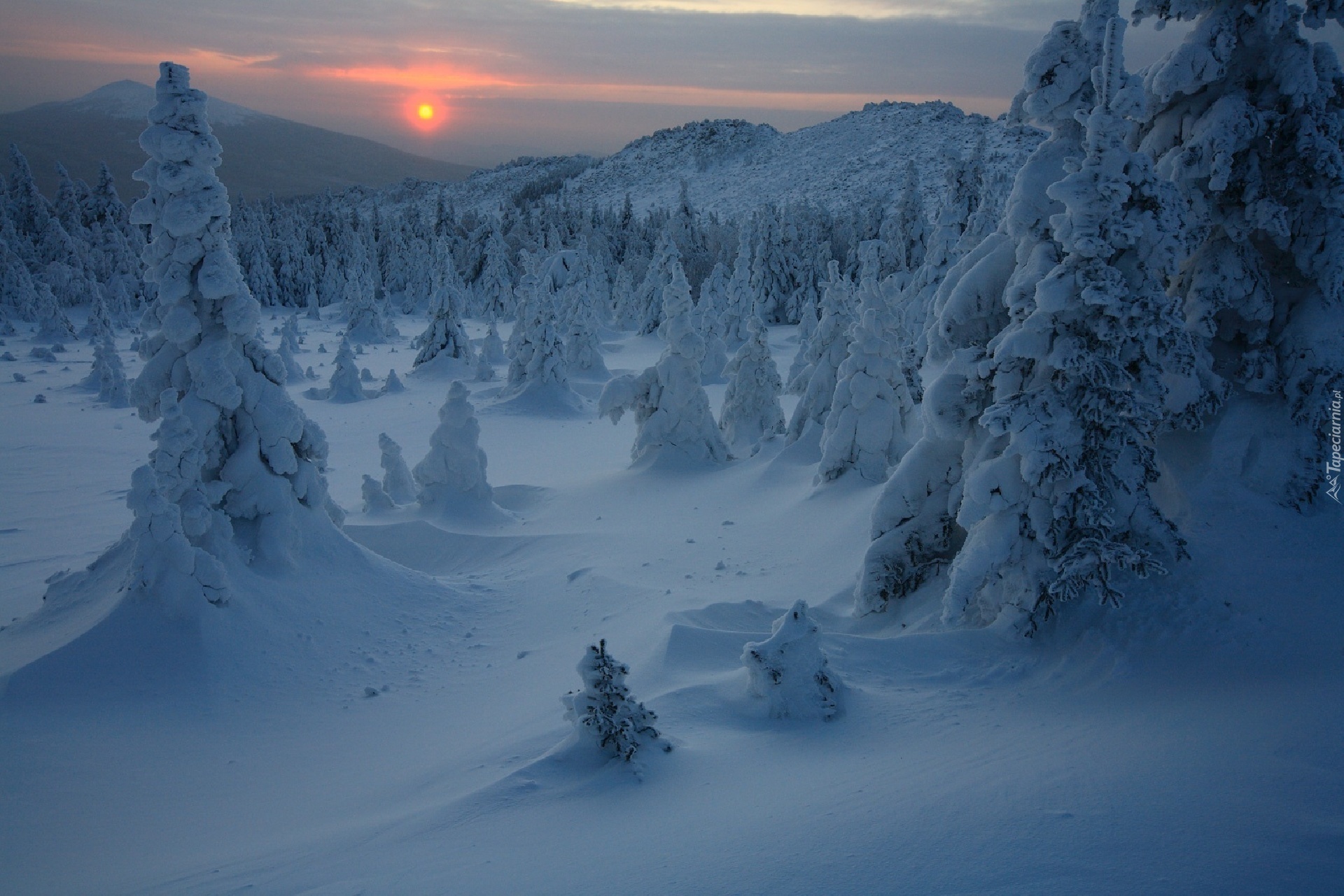 Edytor tapety: Zima, Góry, Zachód słońca