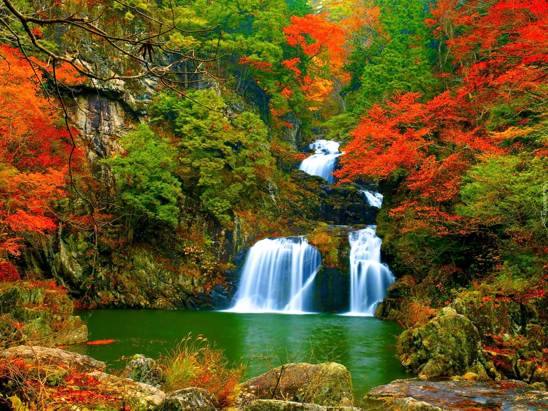 Edytor tapety: Jesień, Wodospad, Las