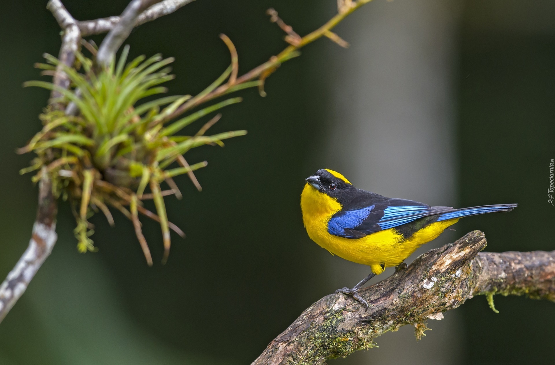 Edytor tapety: Żółto-Niebieski, Ptaszek, Gałąź