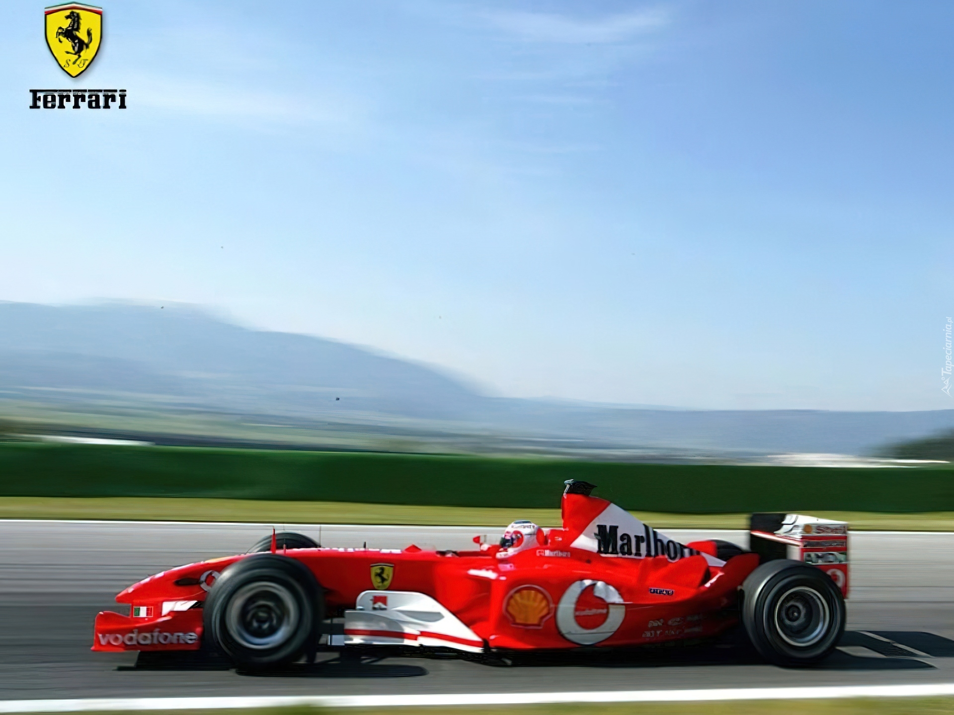 Edytor tapety: Formuła 1,ferrari ,bolid,opony, kask , koła, spojler