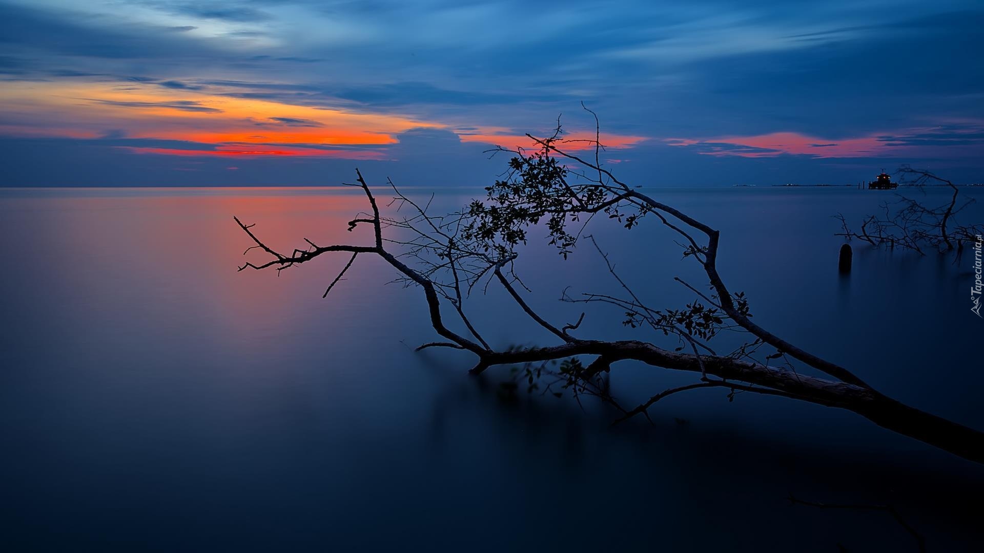 Edytor tapety: Krajobraz, Zachód słońca, Powalone drzewo