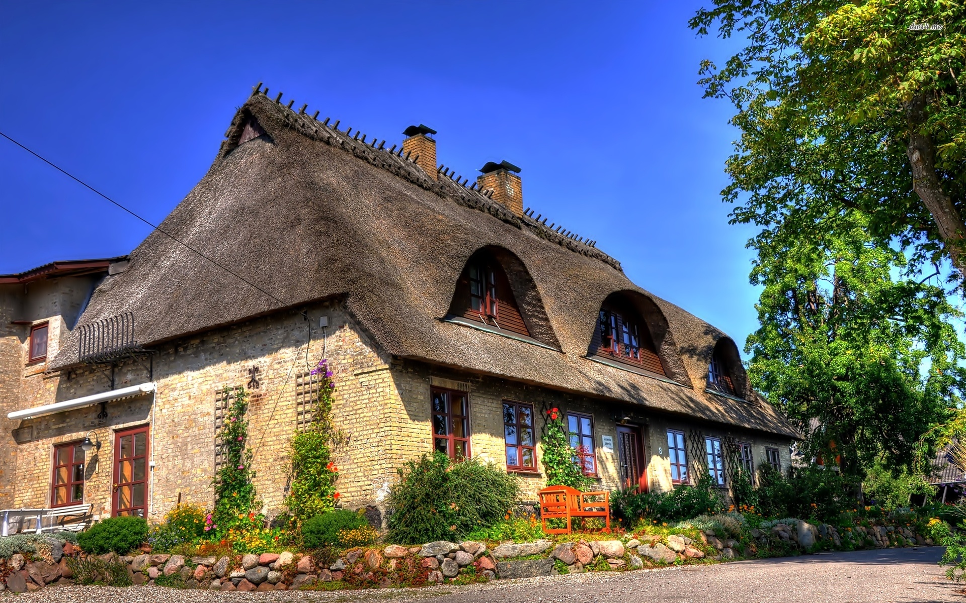 Edytor tapety: Dom, Kwiaty, Kamienie