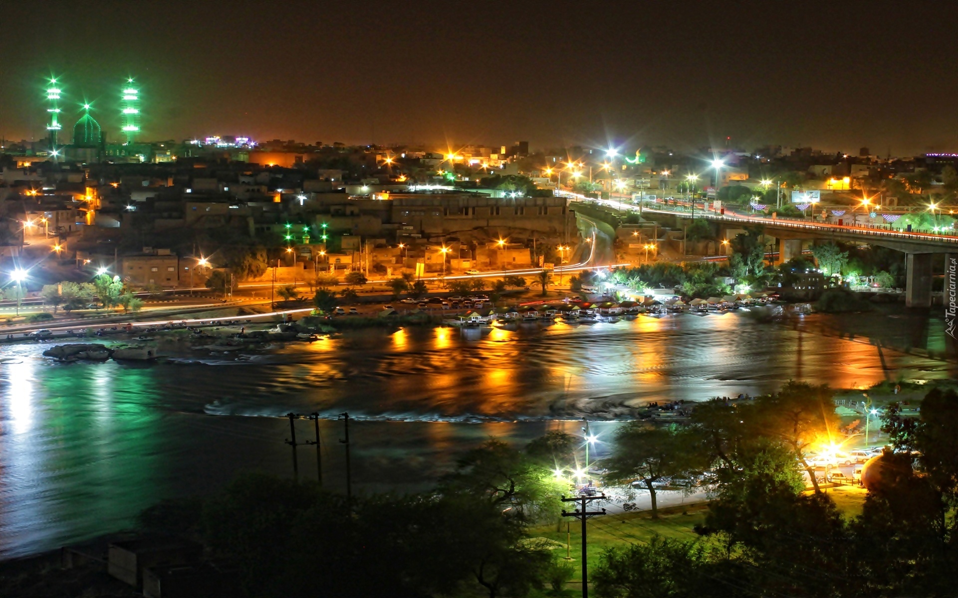 Edytor tapety: Miasto, Nocą, Rzeka, Most