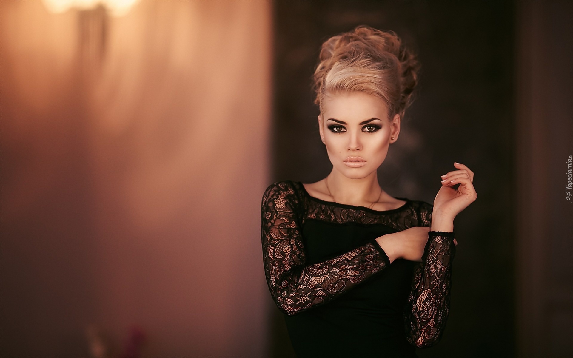 Edytor tapety: Kobieta, Kok, Makijaż, Czarna, Sukienka, Moda