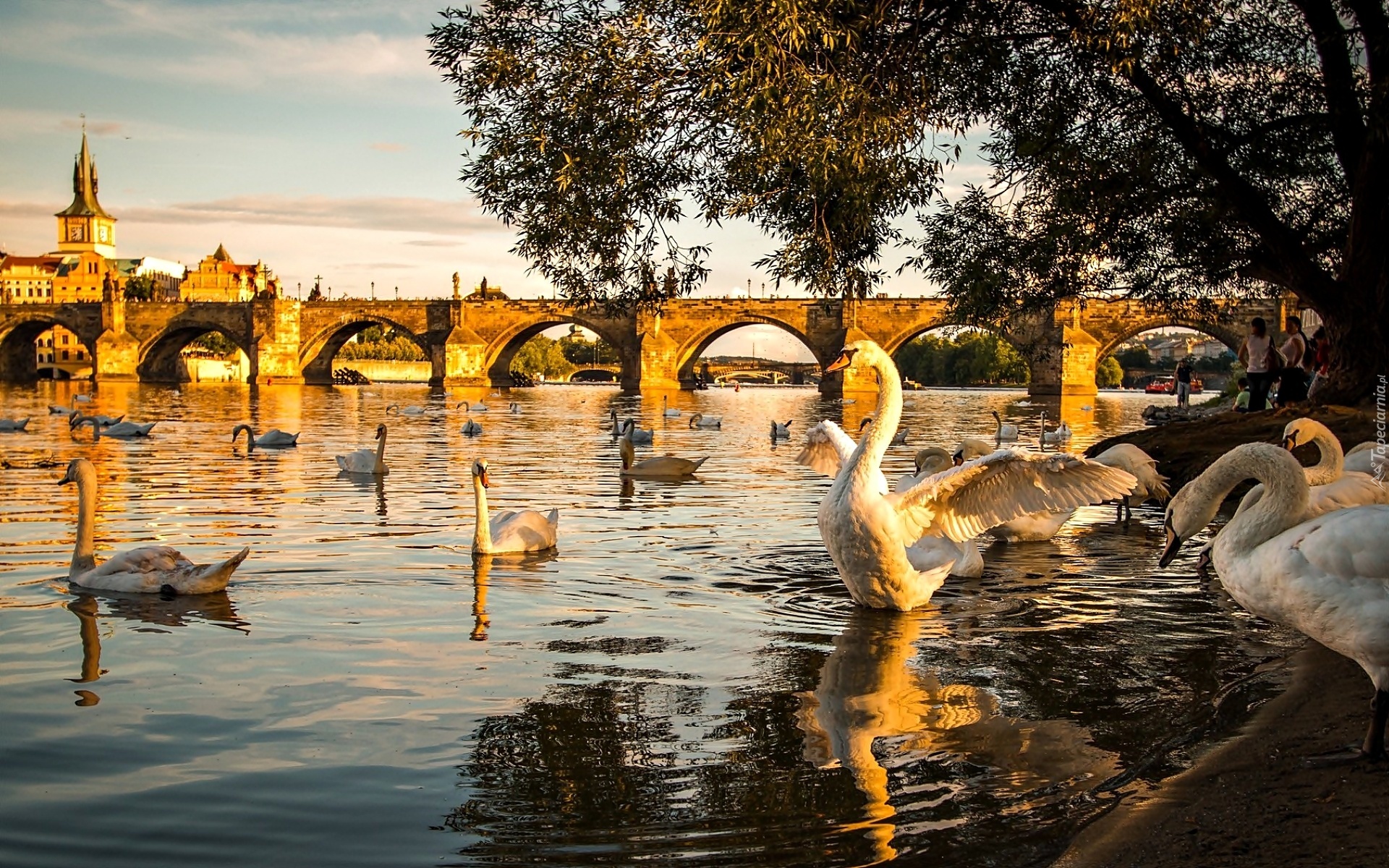 Edytor tapety: Rzeka, Most, Łabędzie