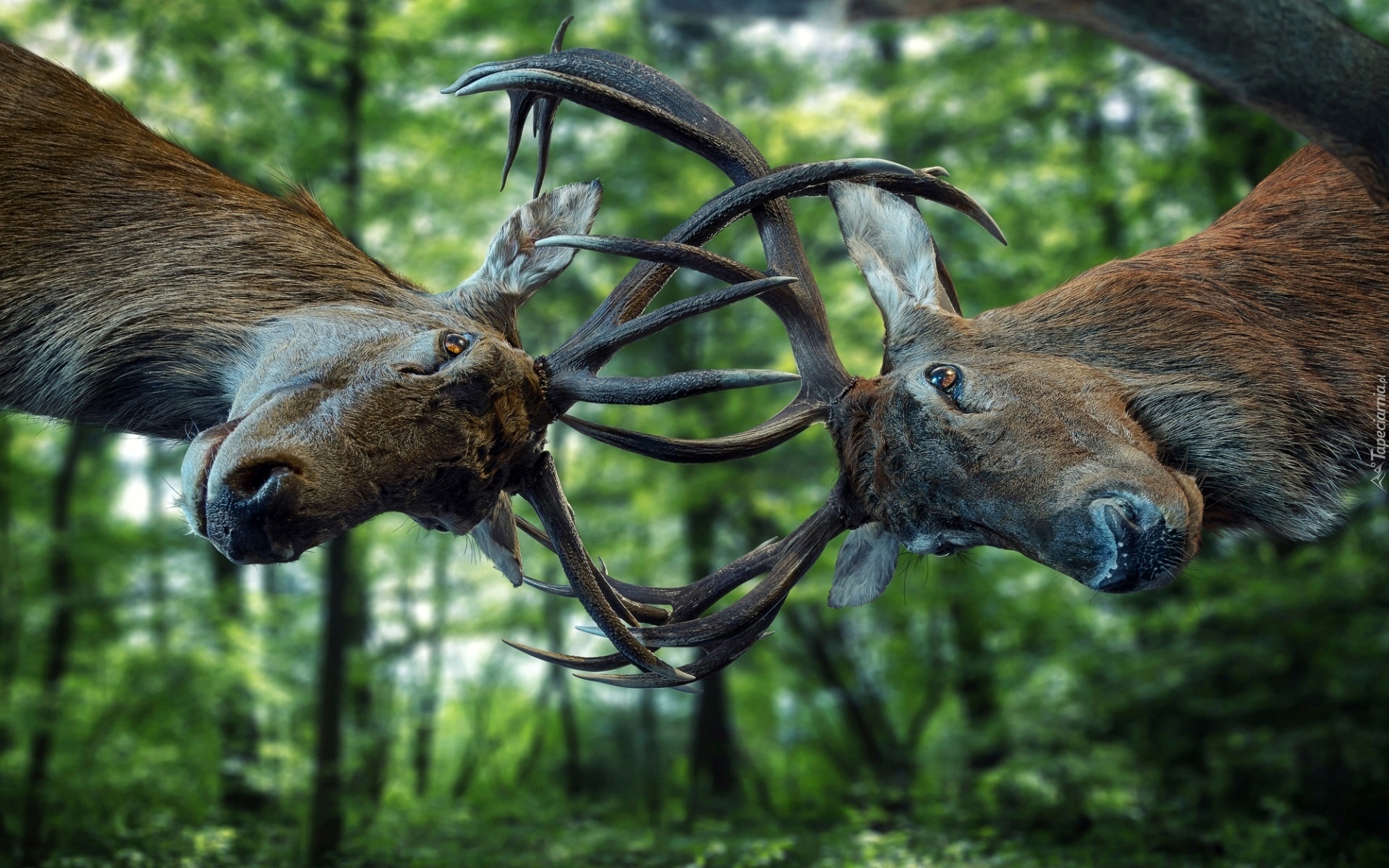 Edytor tapety: Las, Jelenie, Rogi, Walka