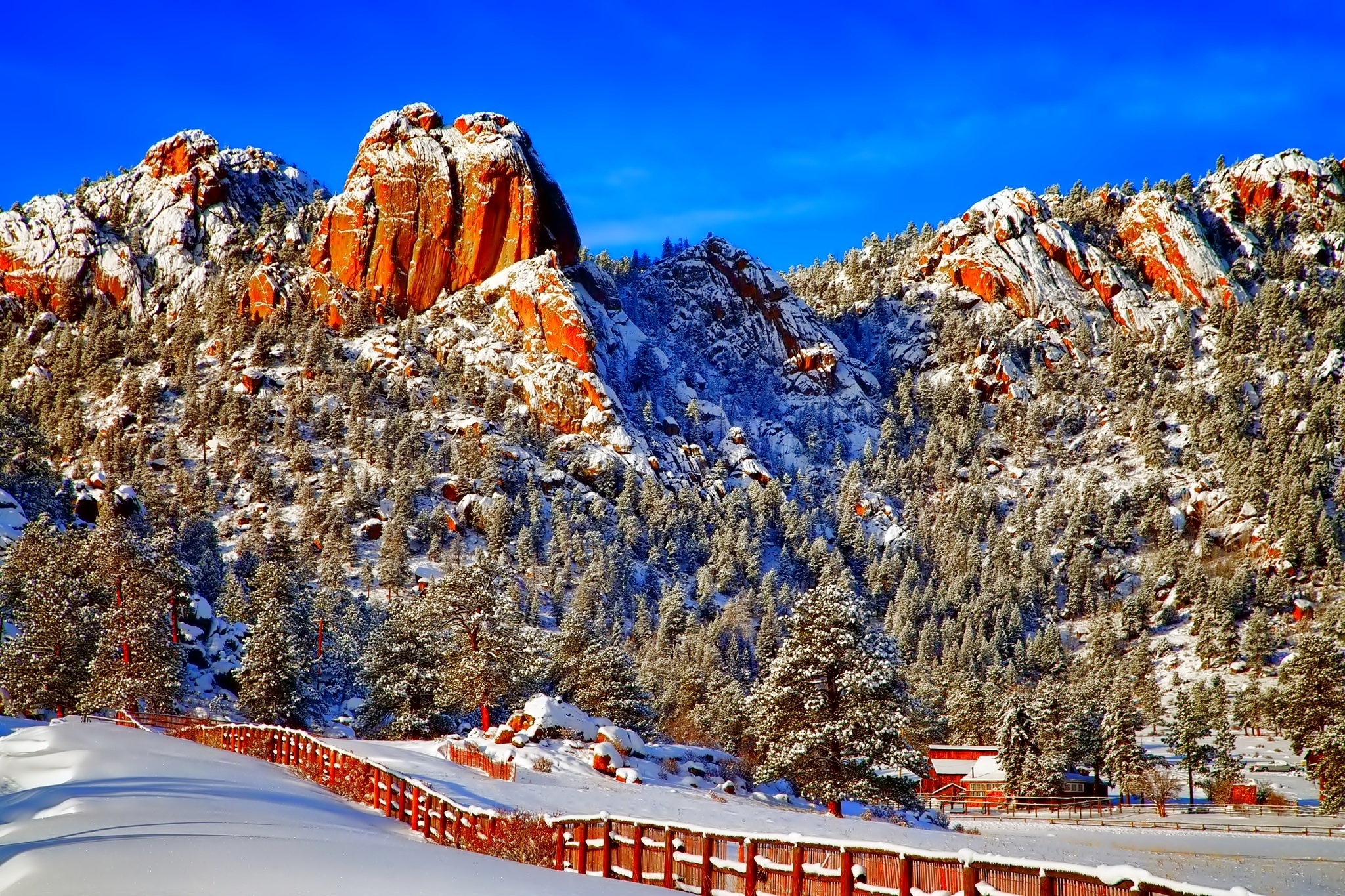 Edytor tapety: Domy, zima, Góry, Lasy