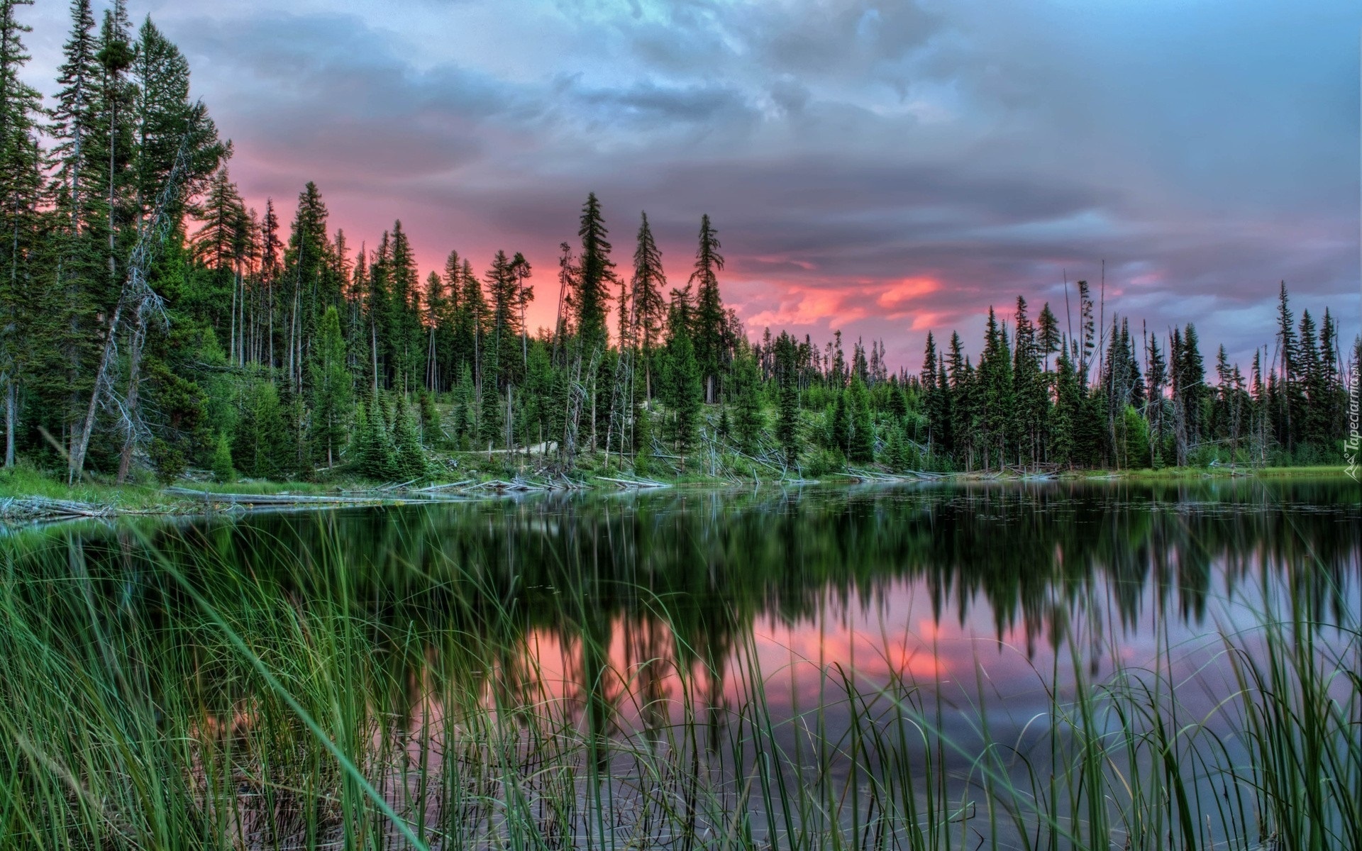Edytor tapety: Krajobraz, Jezioro, Las, Chmury, Niebo