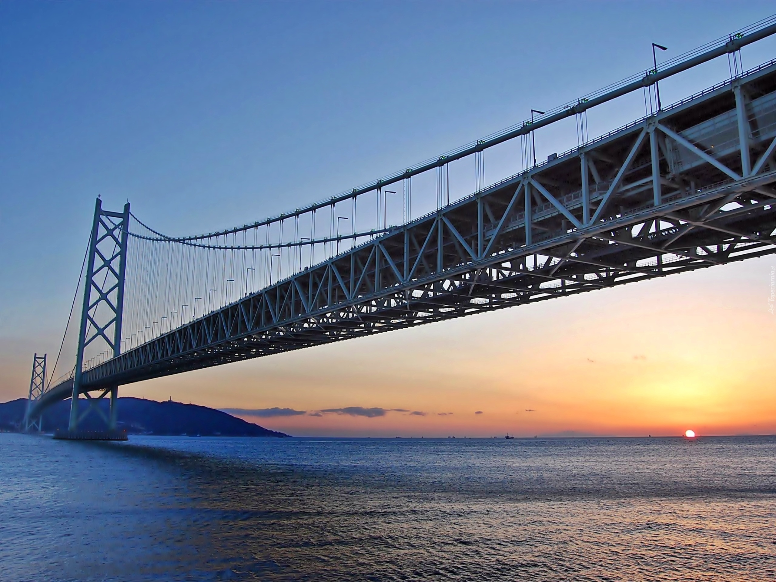 Edytor tapety: Most, Morze, Niebo, Chmury, Zachód Słońca