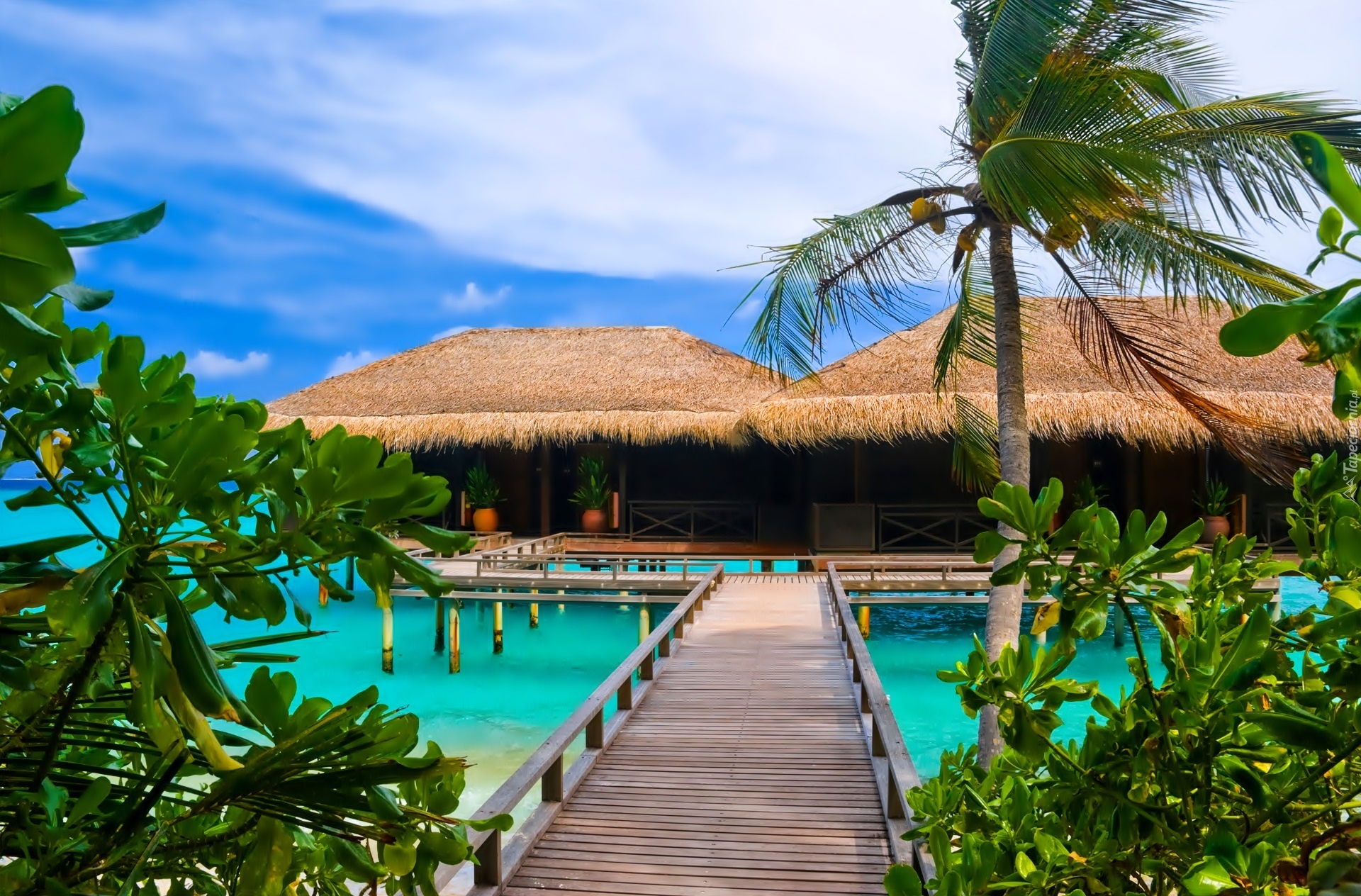 Edytor tapety: Morze, Palmy, Domki, Pomost