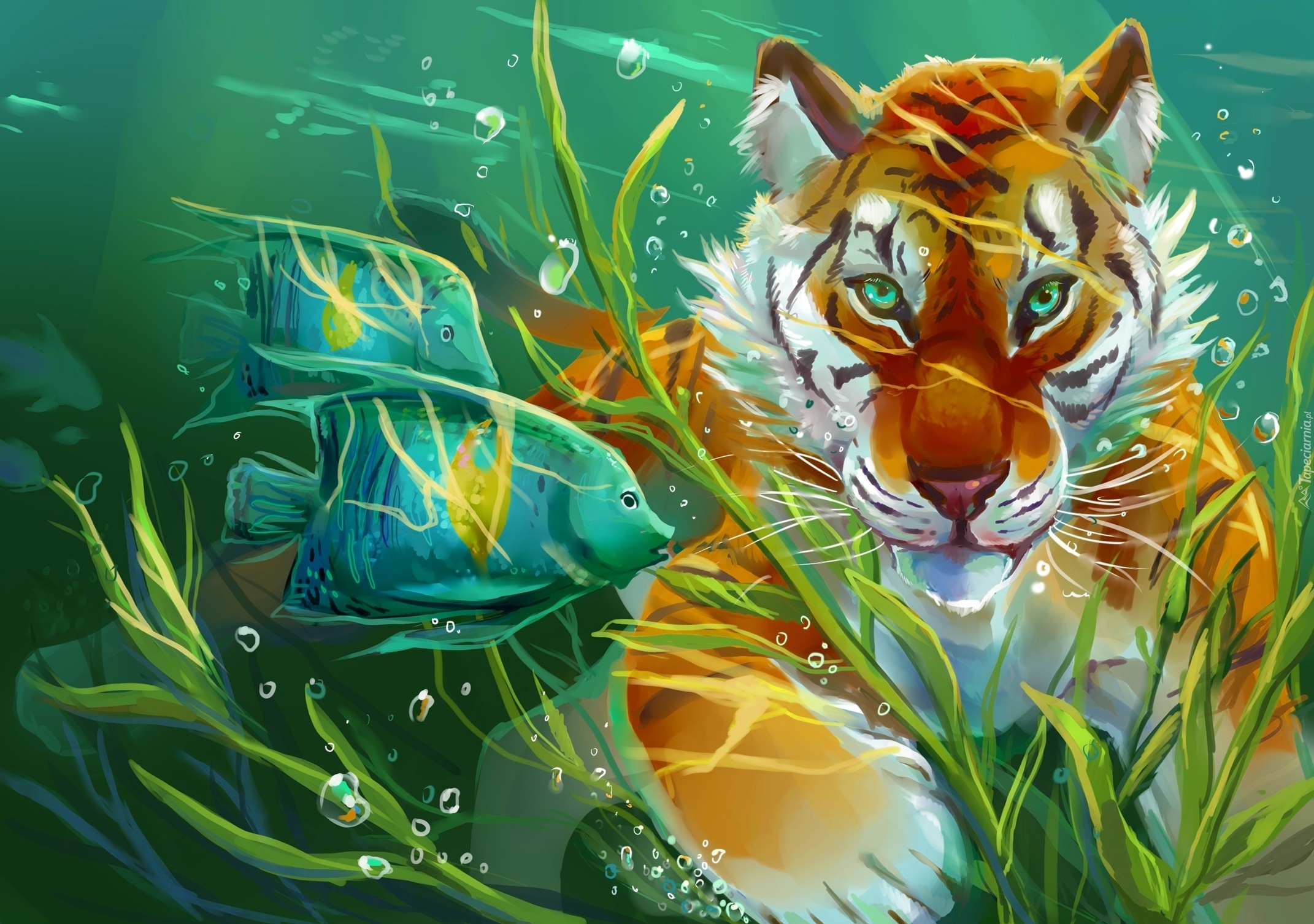 Edytor tapety: Tygrys, Fantasy, Nurkowanie