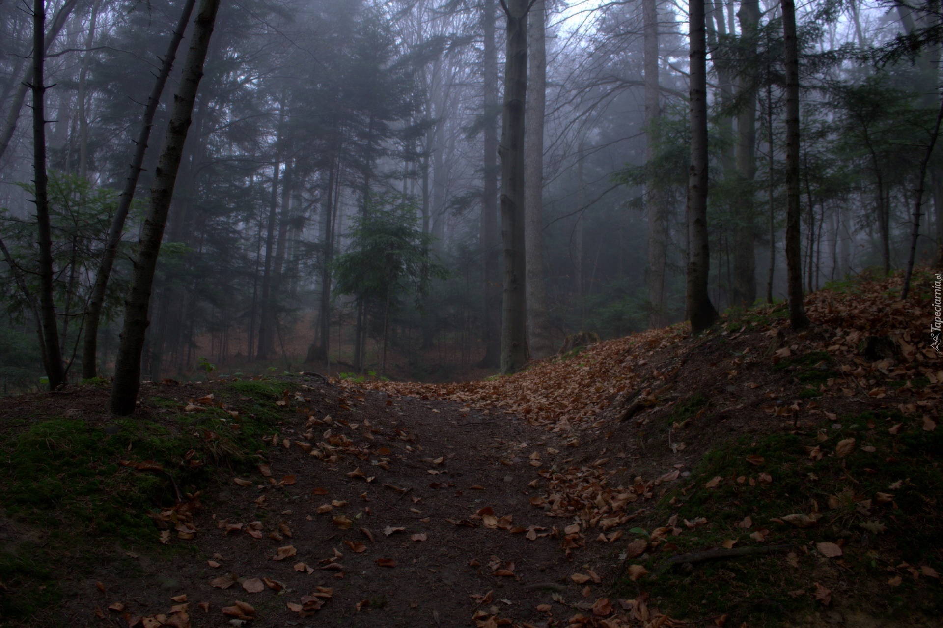 Edytor tapety: Las, Ścieżka, Mgła