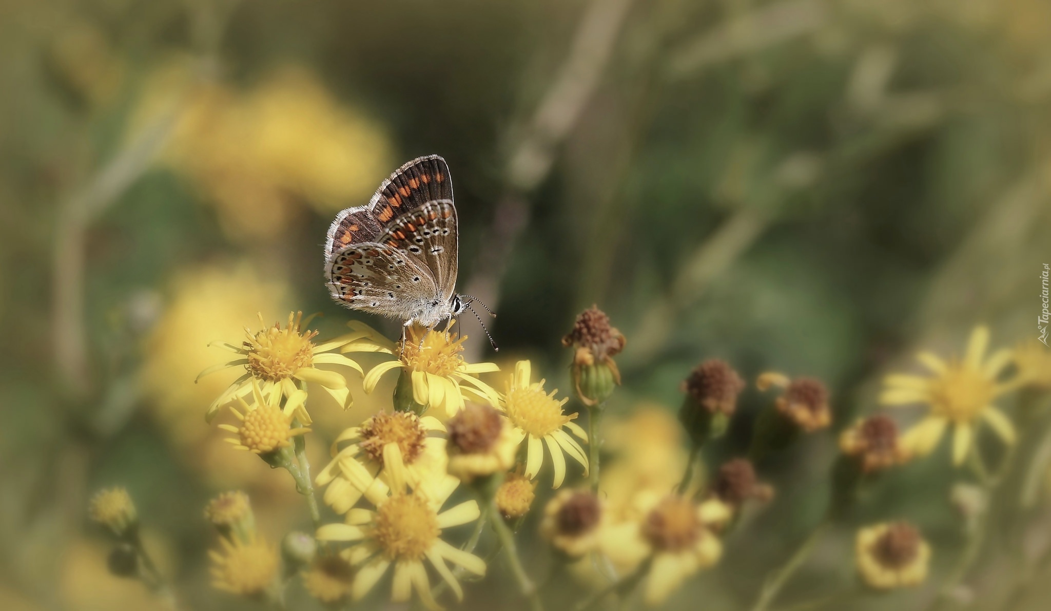 Edytor tapety: Motyl, Żółte, Kwiaty