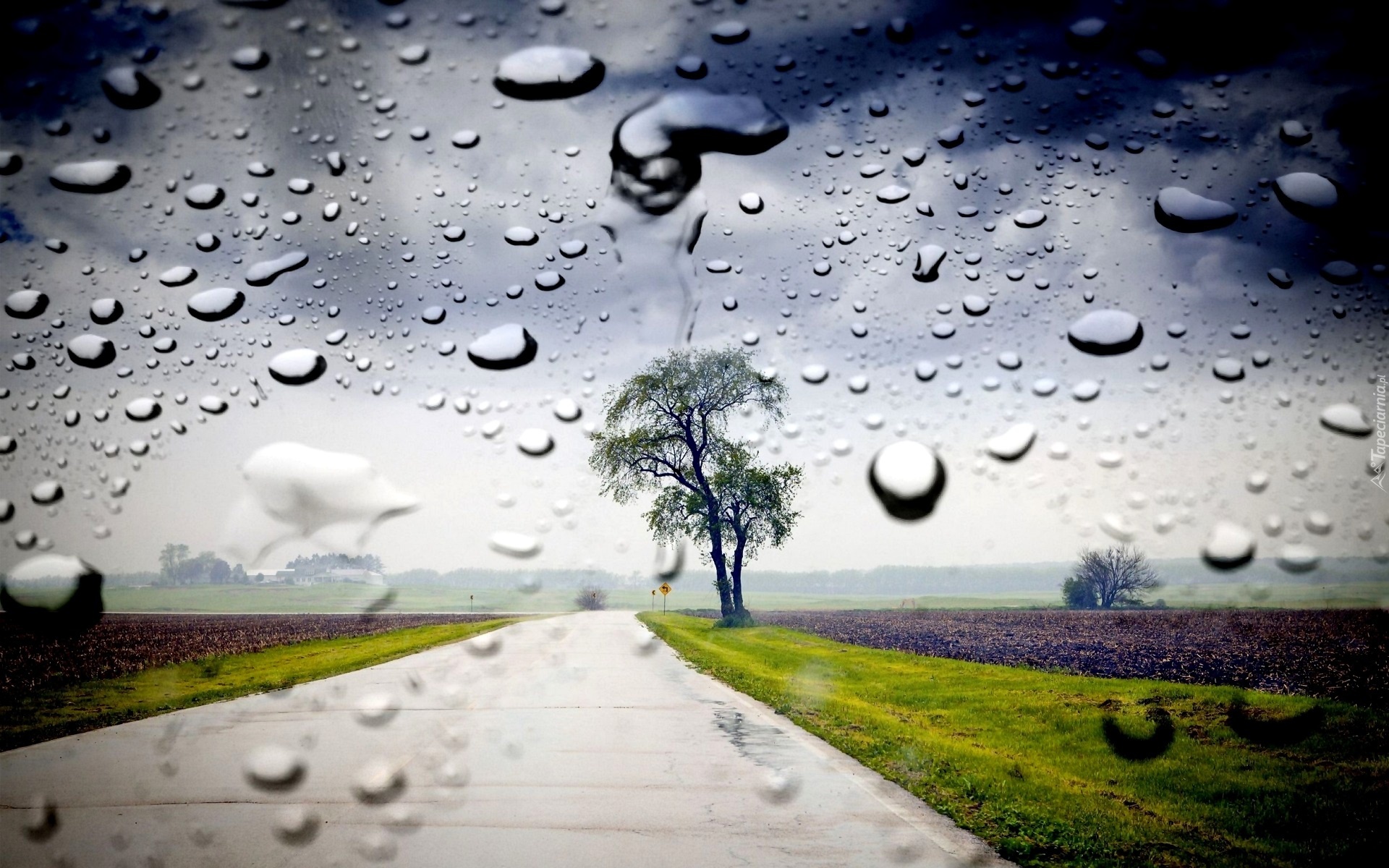 Edytor tapety: Droga, Pola, Wiosna, Deszcz, Drzewo